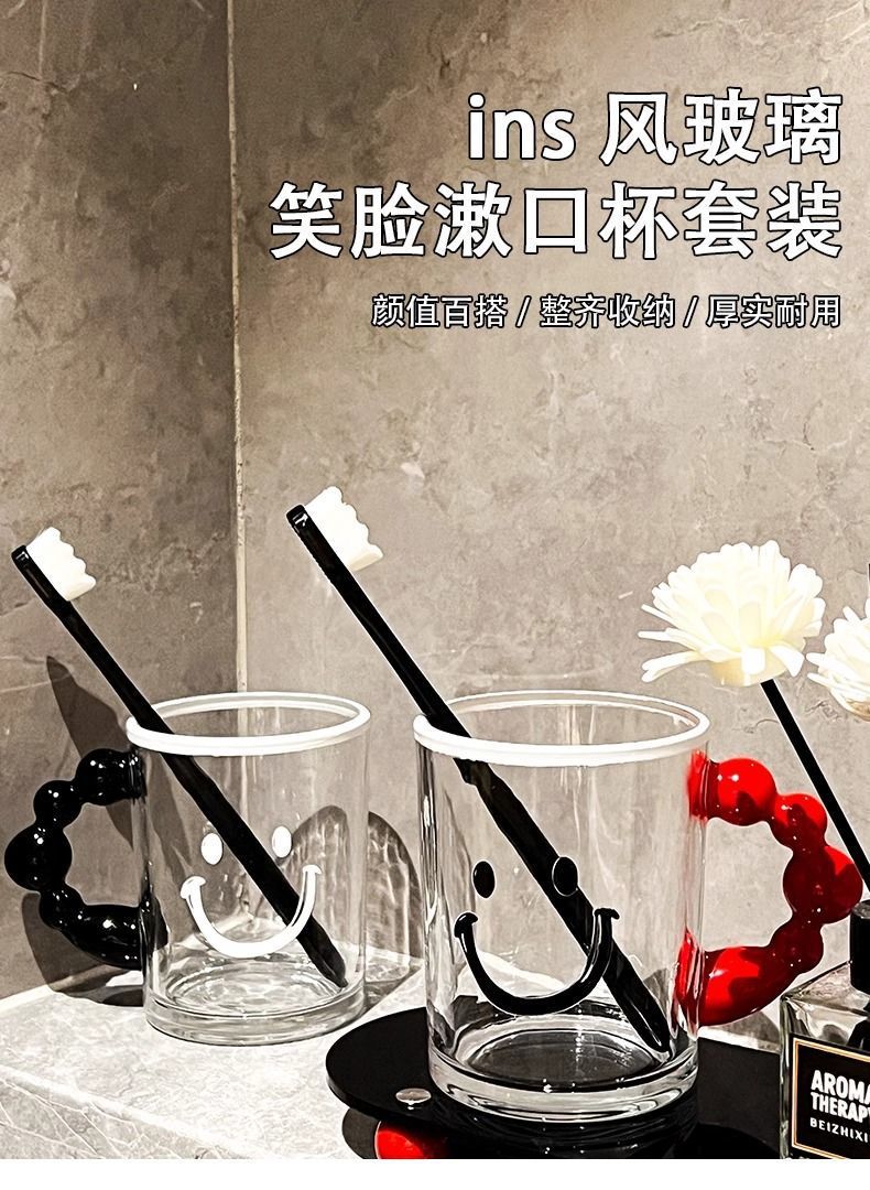 핸드 컬러 유리 보관 랙베이스 스마일리 창조적 인 배치 브래킷 칫솔 홀더 칫솔 가글 컵