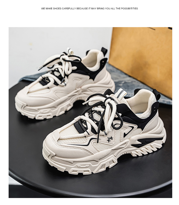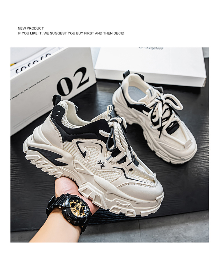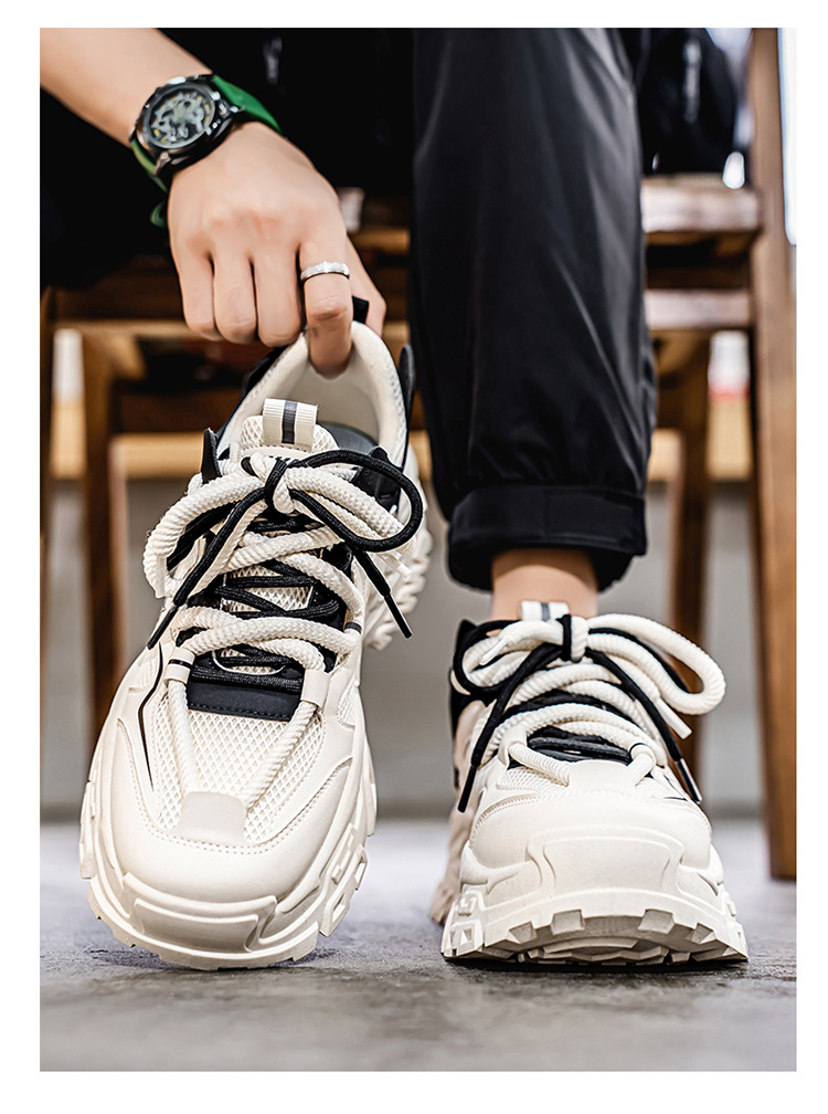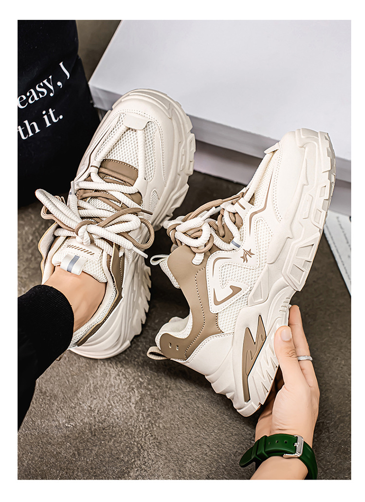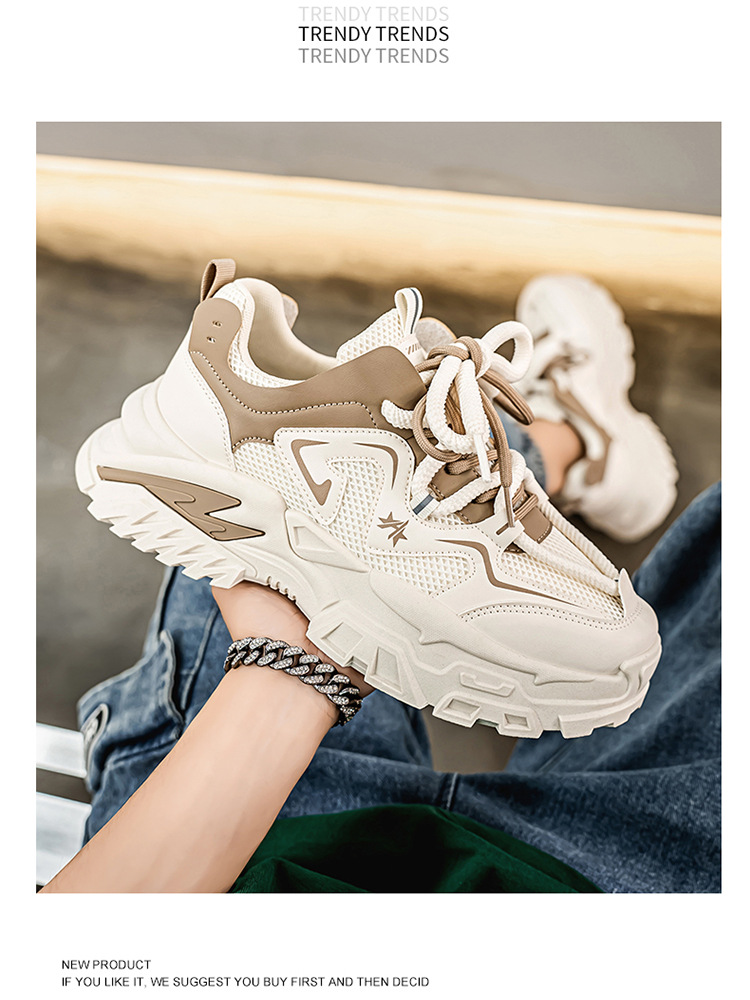 여름 새로운 두꺼운 밑창 증가 된 스포츠 아빠 신발 올매치 트렌디 신발 2025 청소년 캐주얼 메쉬 통기성 남성 신발스토어 가기