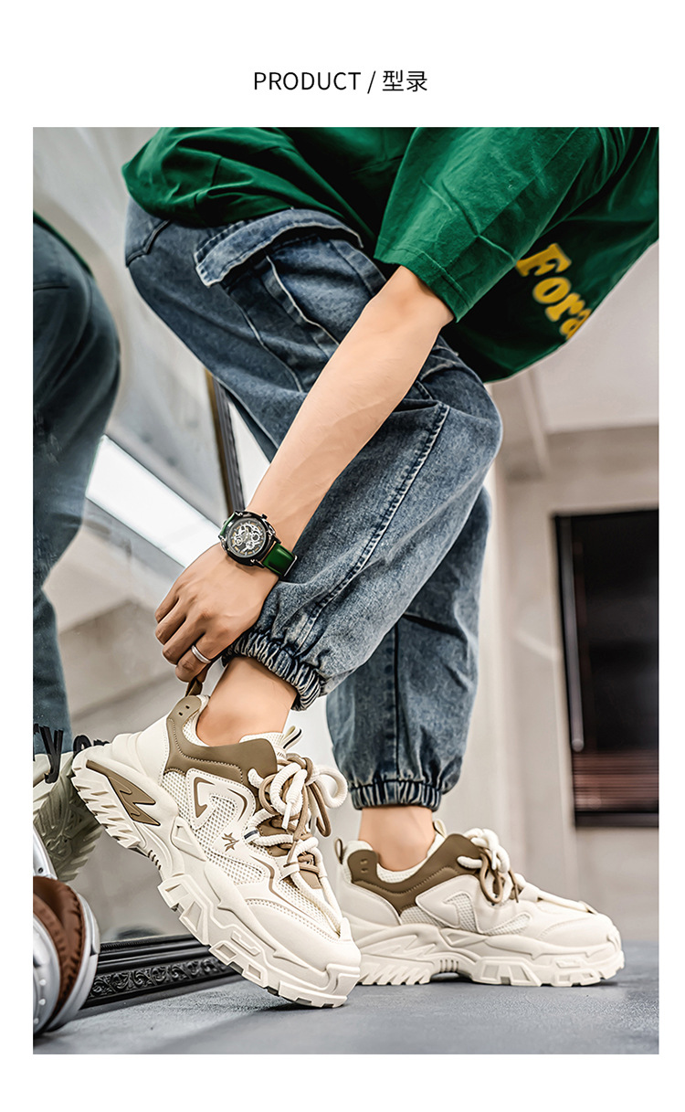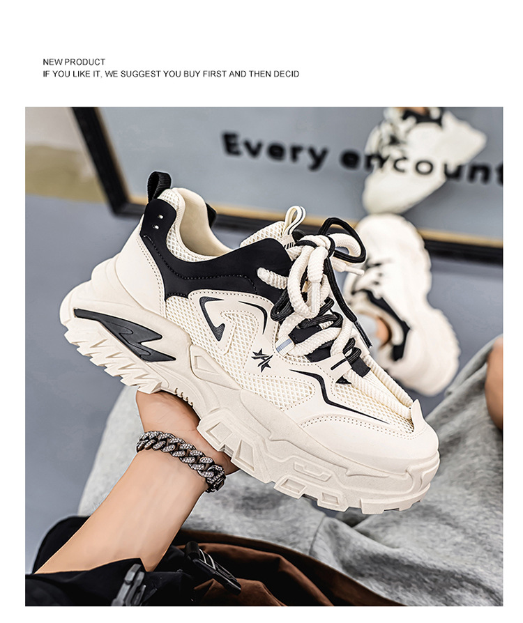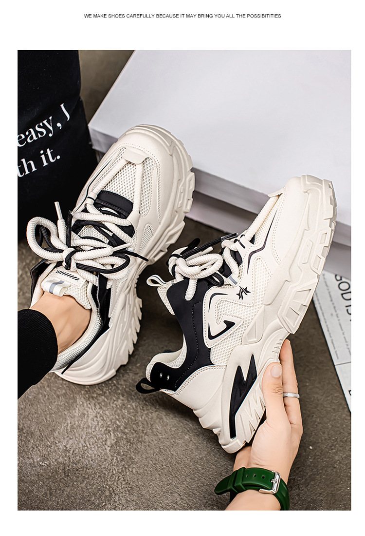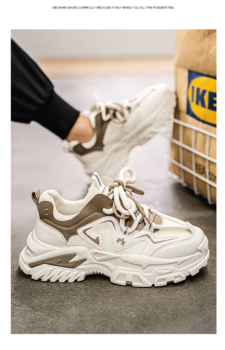 여름 새로운 두꺼운 밑창 증가 된 스포츠 아빠 신발 올매치 트렌디 신발 2025 청소년 캐주얼 메쉬 통기성 남성 신발스토어 가기
