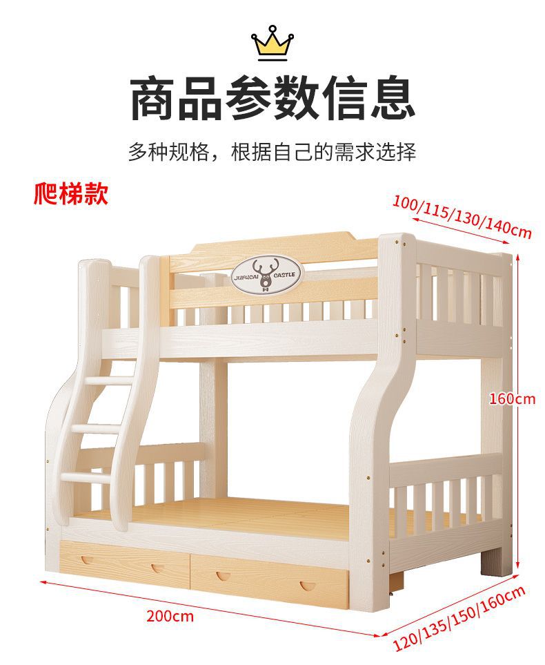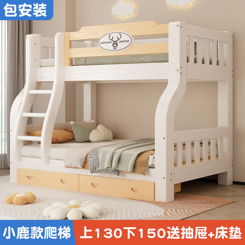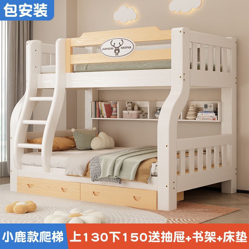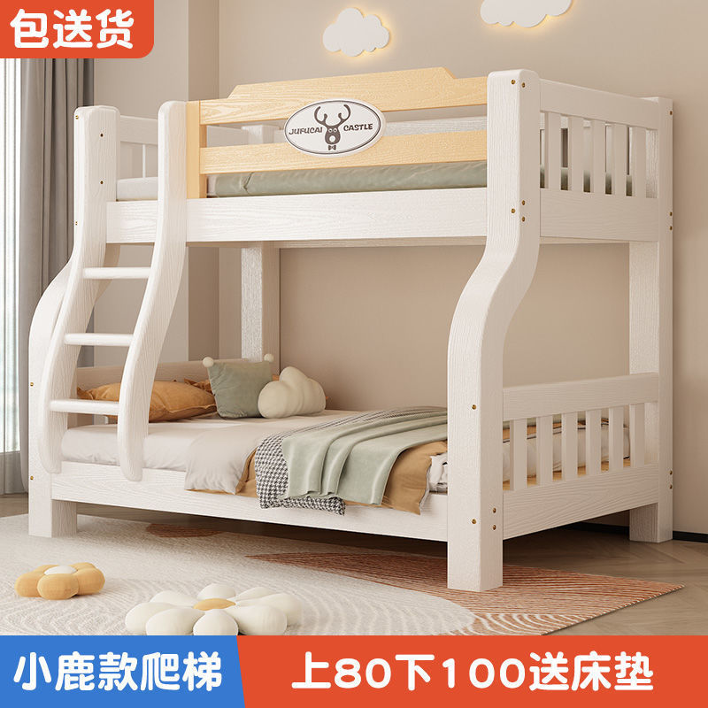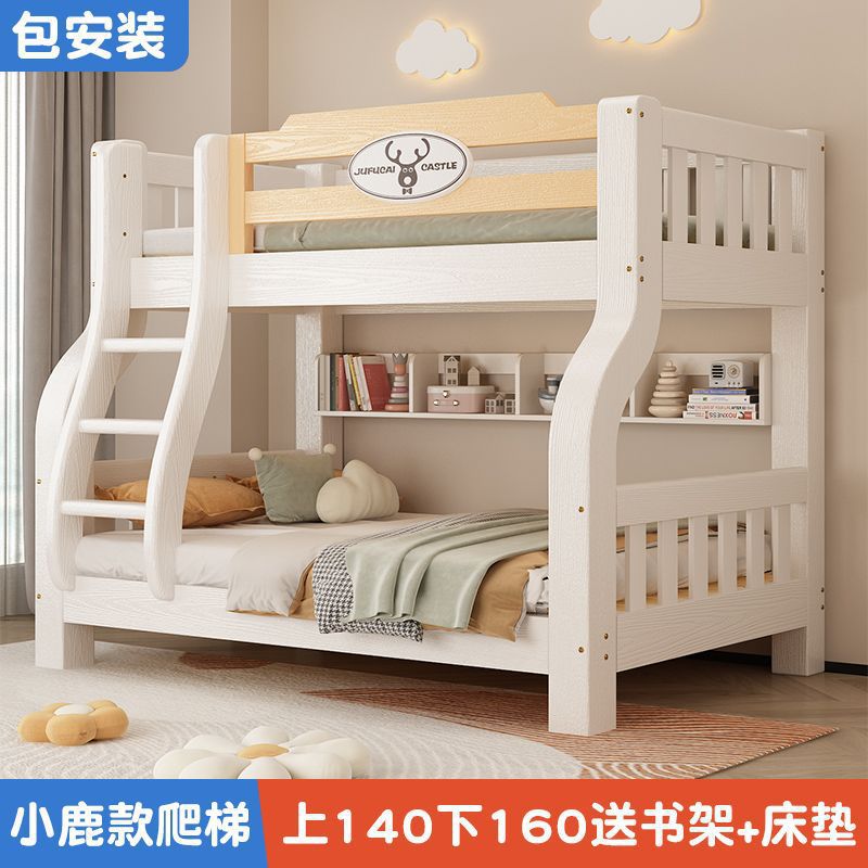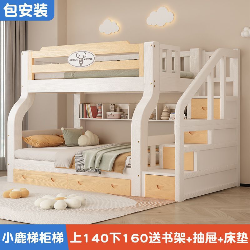 이층 침대 이층 침대 다기능 솔리드 우드 어린이 침대 높고 낮은 침대 침대 침대 성인 2 층 나무 침대