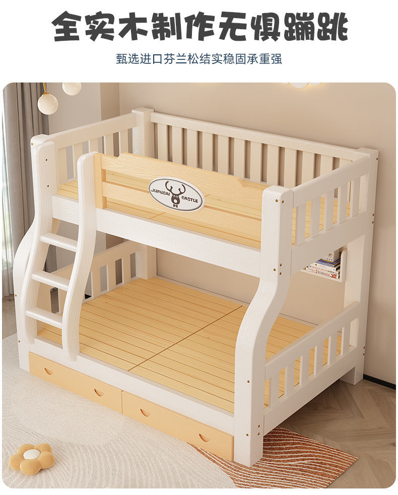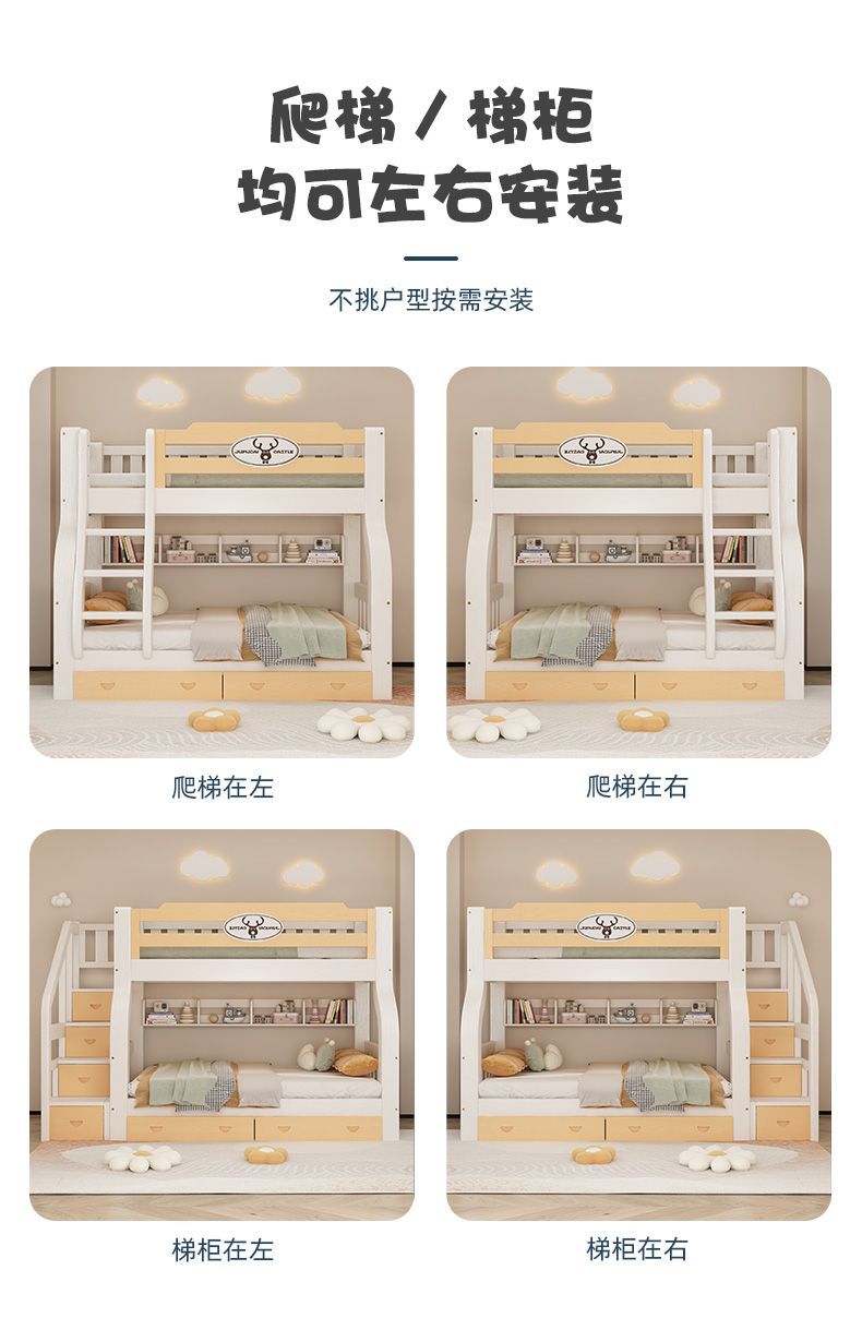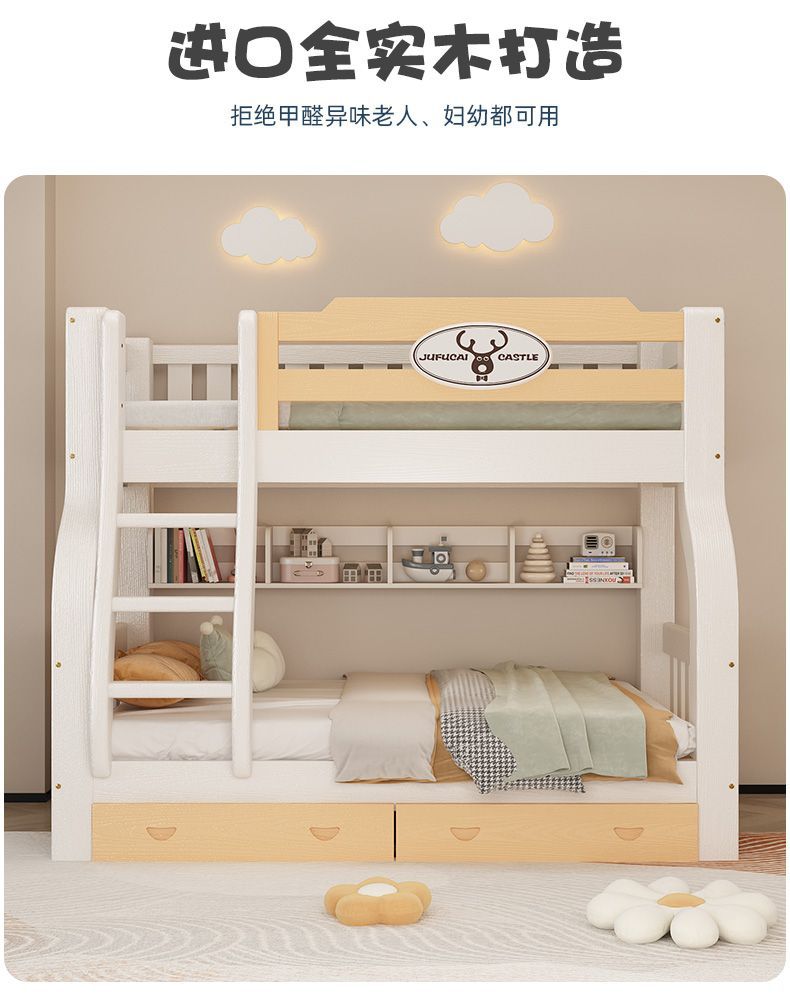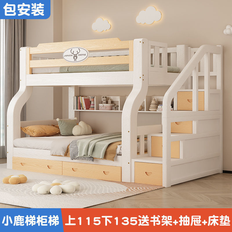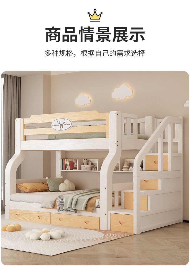 이층 침대 이층 침대 다기능 솔리드 우드 어린이 침대 높고 낮은 침대 침대 침대 성인 2 층 나무 침대스토어 가기
