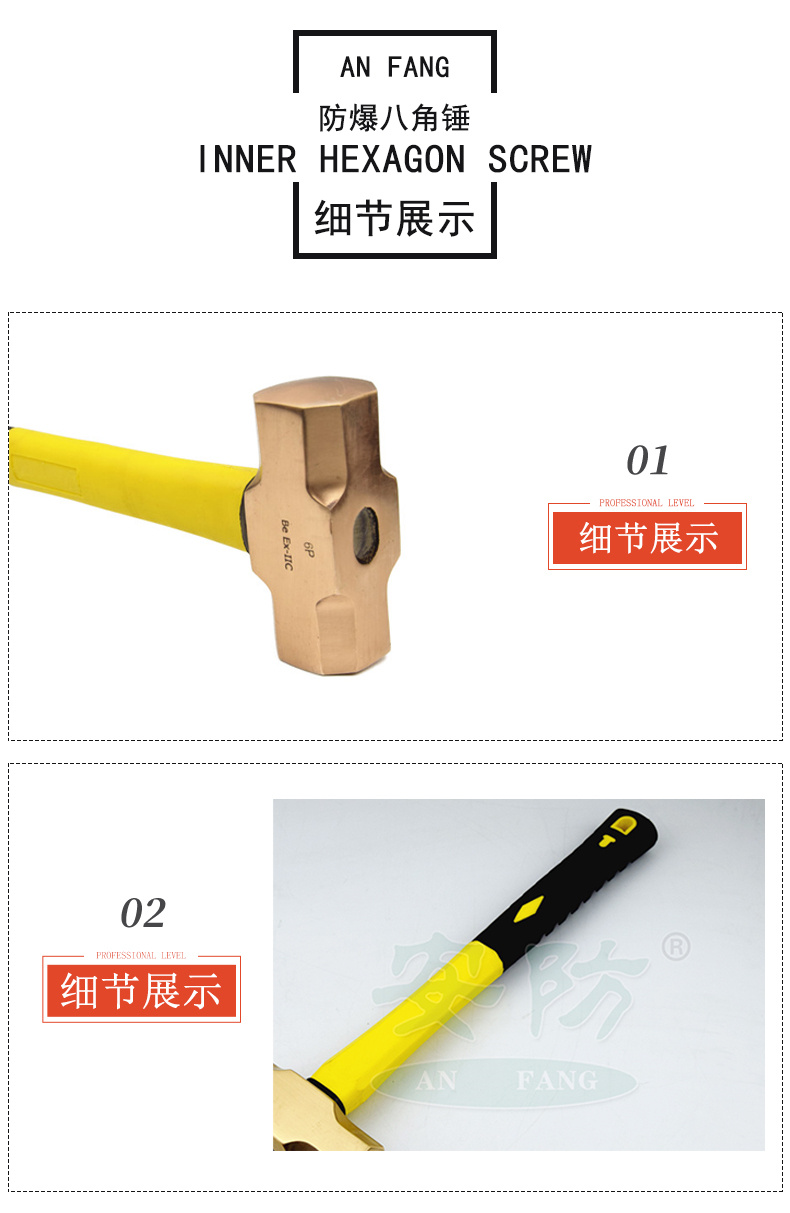 폭발 방지 팔각형 해머 구리 합금 비 스파크 사각 구리 해머 방폭 도구 브랜드 양면 망치스토어 가기