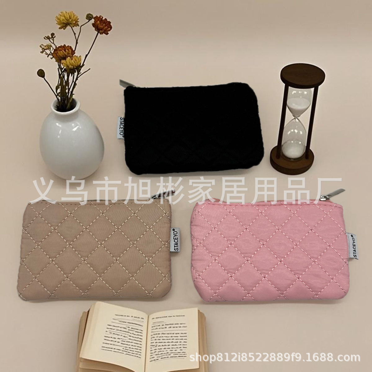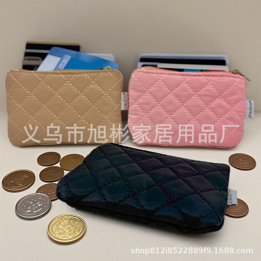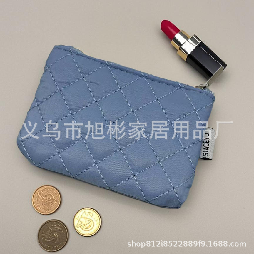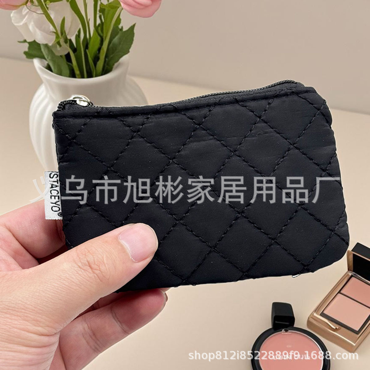 국경 간 인기 판매 단색 심플 스타일 메모리 천 퀼트 동전 가방 실용적인 소형 동전 보관 가방스토어 가기