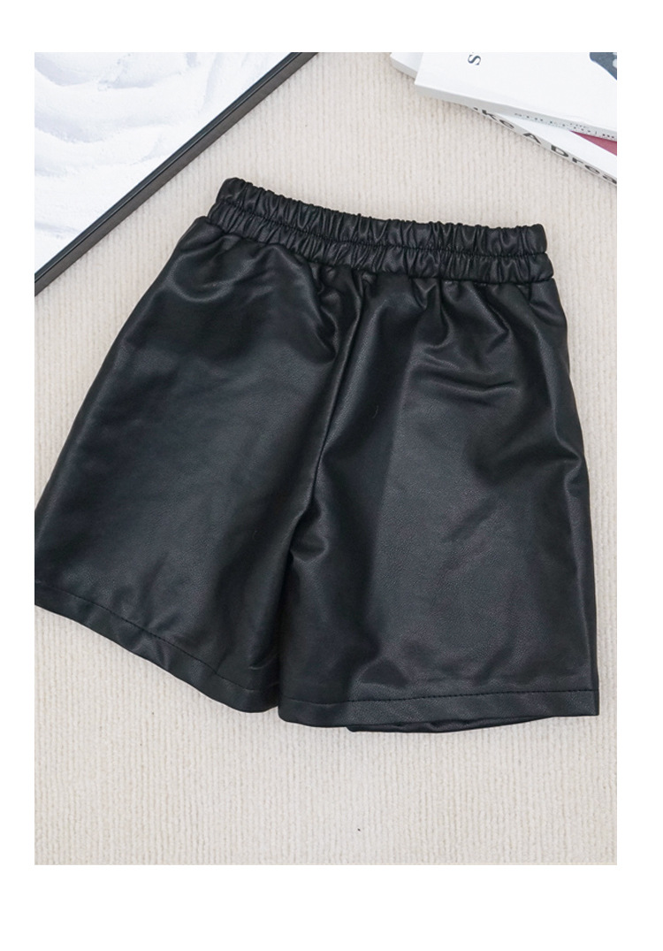대외 무역 소녀 PU 작은 가죽 스커트 봄, 가을 2025 새로운 하이 웨이스트 a 라인 슬림 스커트 스타 버튼 재고 있음