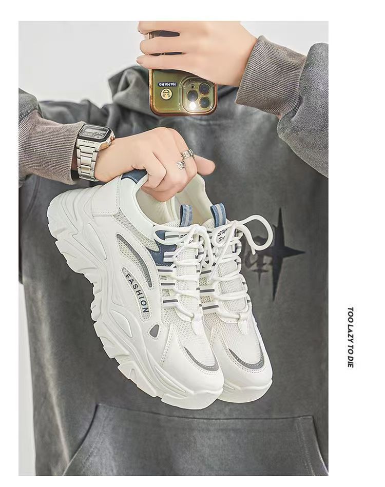남성 신발 여름 메쉬 통기성 청소년 스포츠 미끄럼 방지 캐주얼 신발 두꺼운 단독 증가 러닝 화이트 토르 트렌디 신발스토어 가기