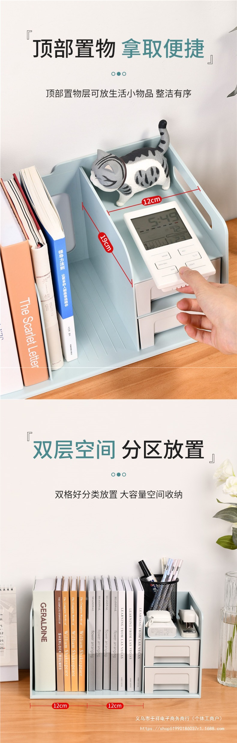• @₪【새로운 책장과 펜 홀더가 하나로 통합되었습니다】파란색과 흰색₲₲