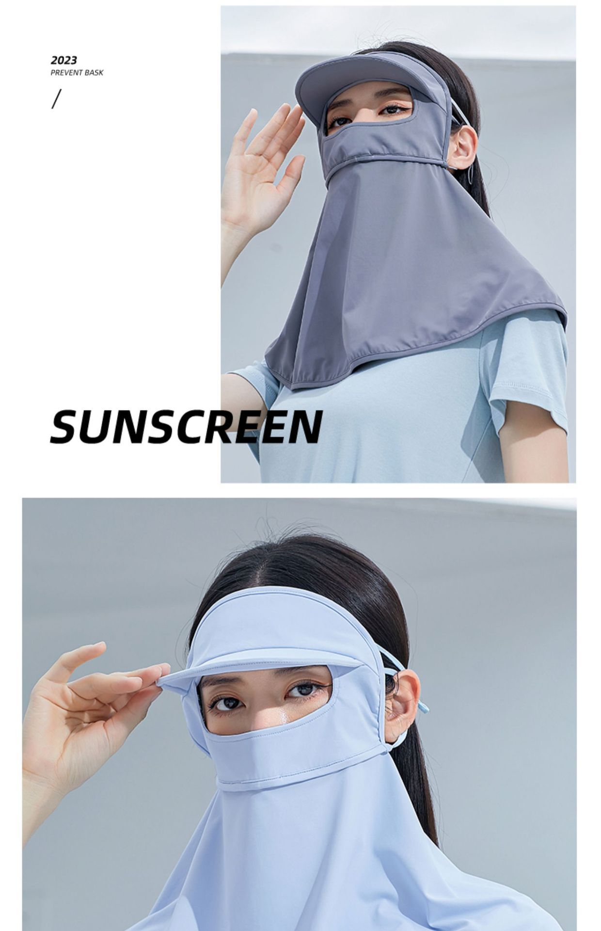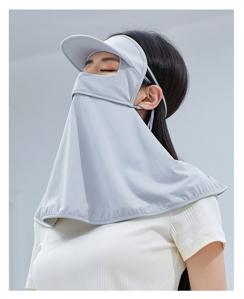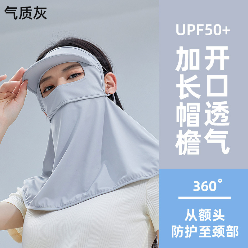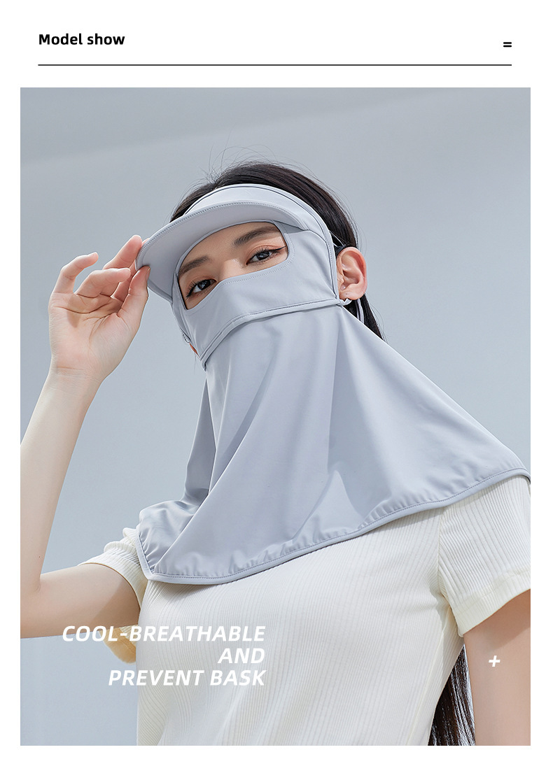 챙이 있는 자외선 차단 마스크, 얼굴 전체 자외선 차단, 목을 덮는 얼음 실크, 여름용 얇고 통기성이 좋은 눈 보호 자외선 차단 마스크