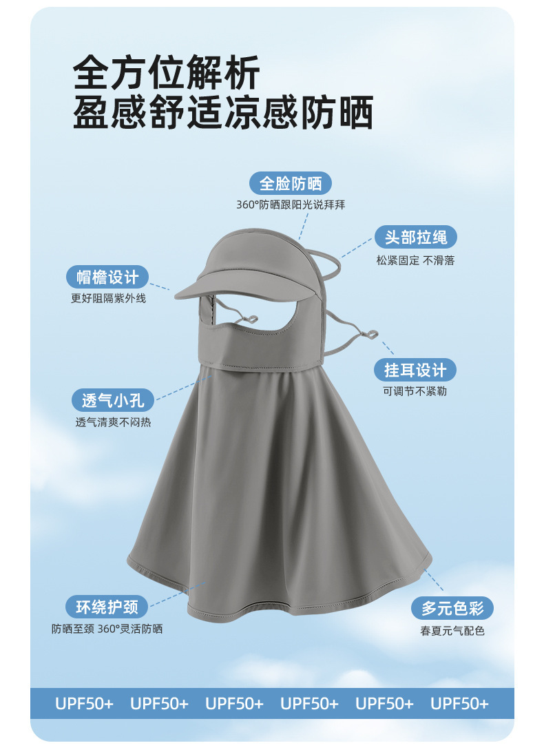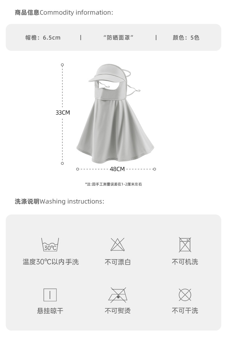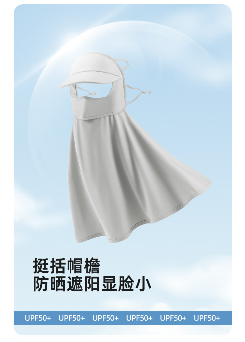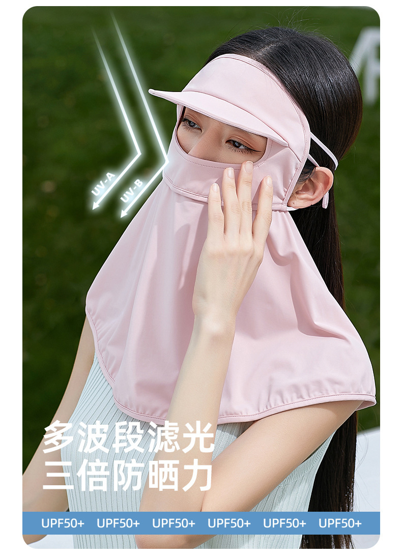 챙이 있는 자외선 차단 마스크, 얼굴 전체 자외선 차단, 목을 덮는 얼음 실크, 여름용 얇고 통기성이 좋은 눈 보호 자외선 차단 마스크