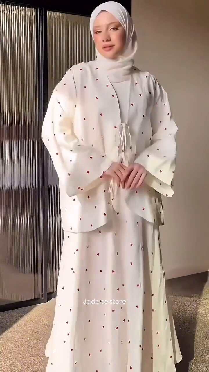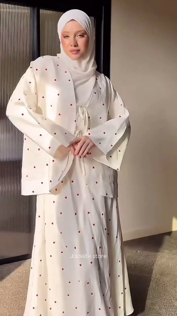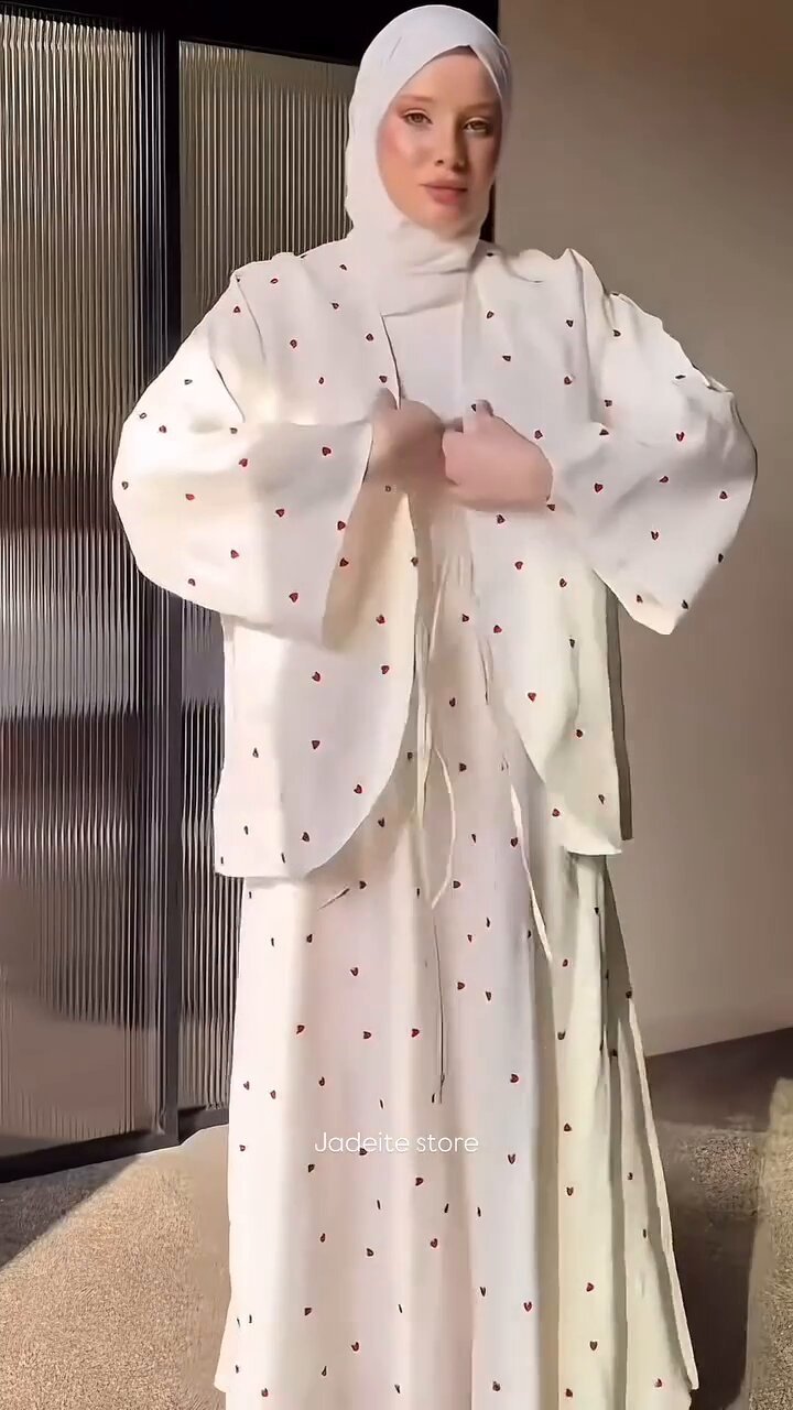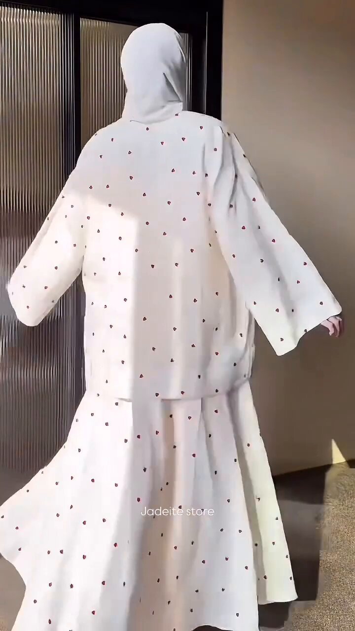 중동 아랍 국경 여성 2025 새로운 패션 느슨한 레이스 인쇄 카디건 재킷 스커트 세트스토어 가기