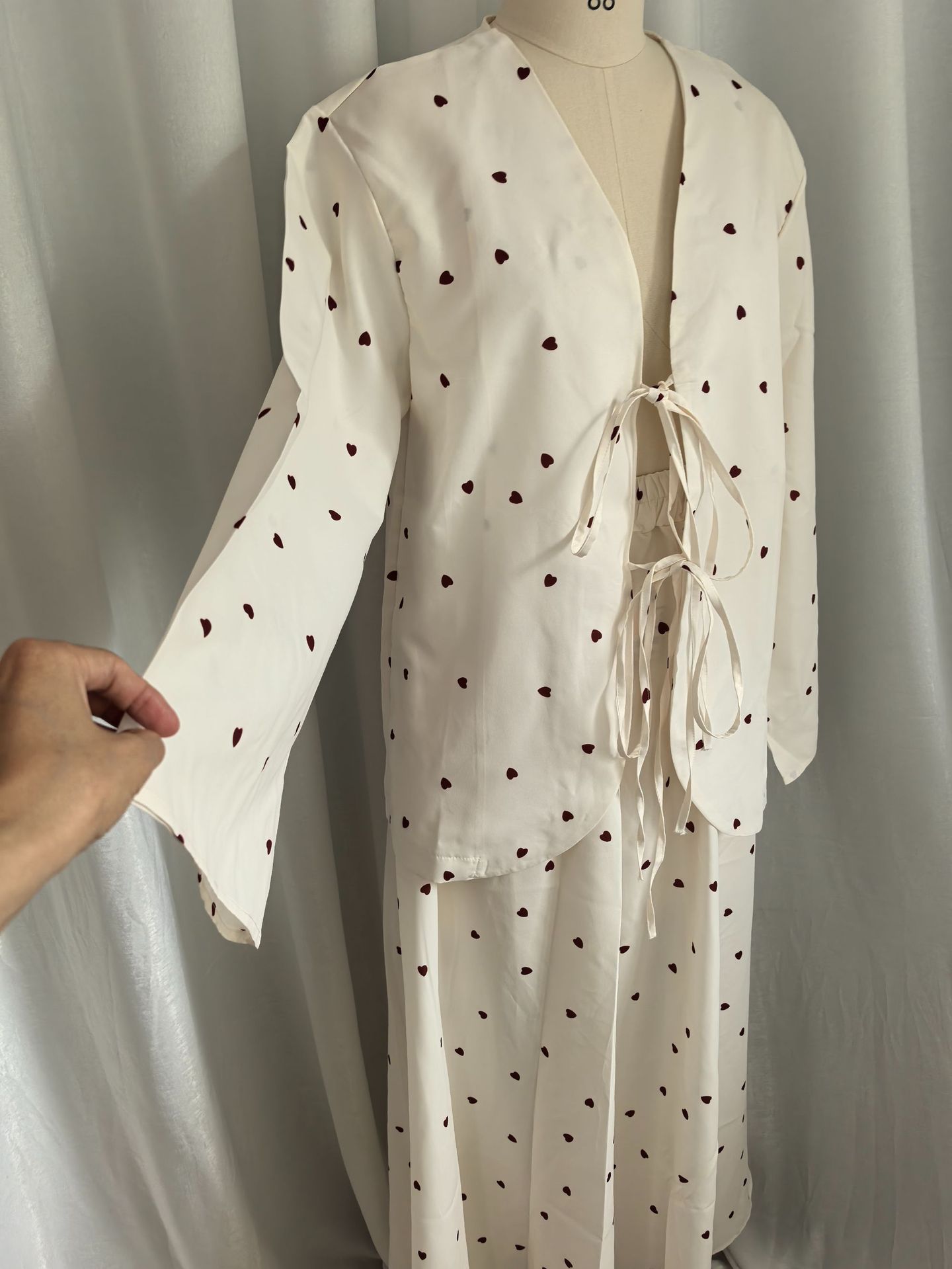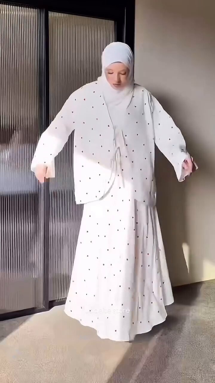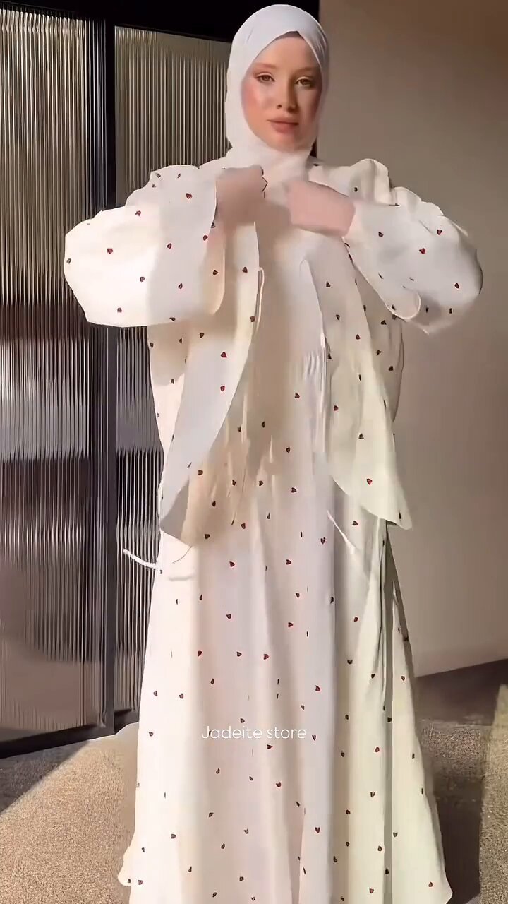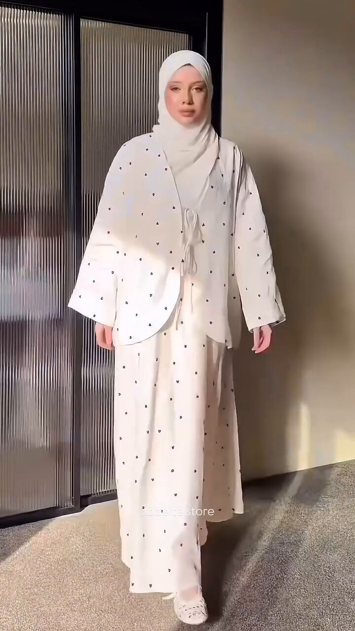 중동 아랍 국경 여성 2025 새로운 패션 느슨한 레이스 인쇄 카디건 재킷 스커트 세트스토어 가기
