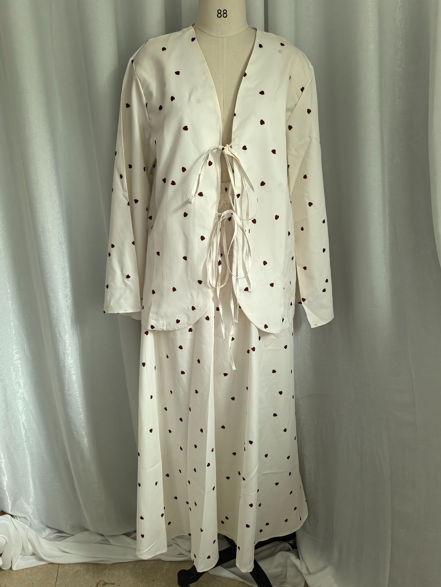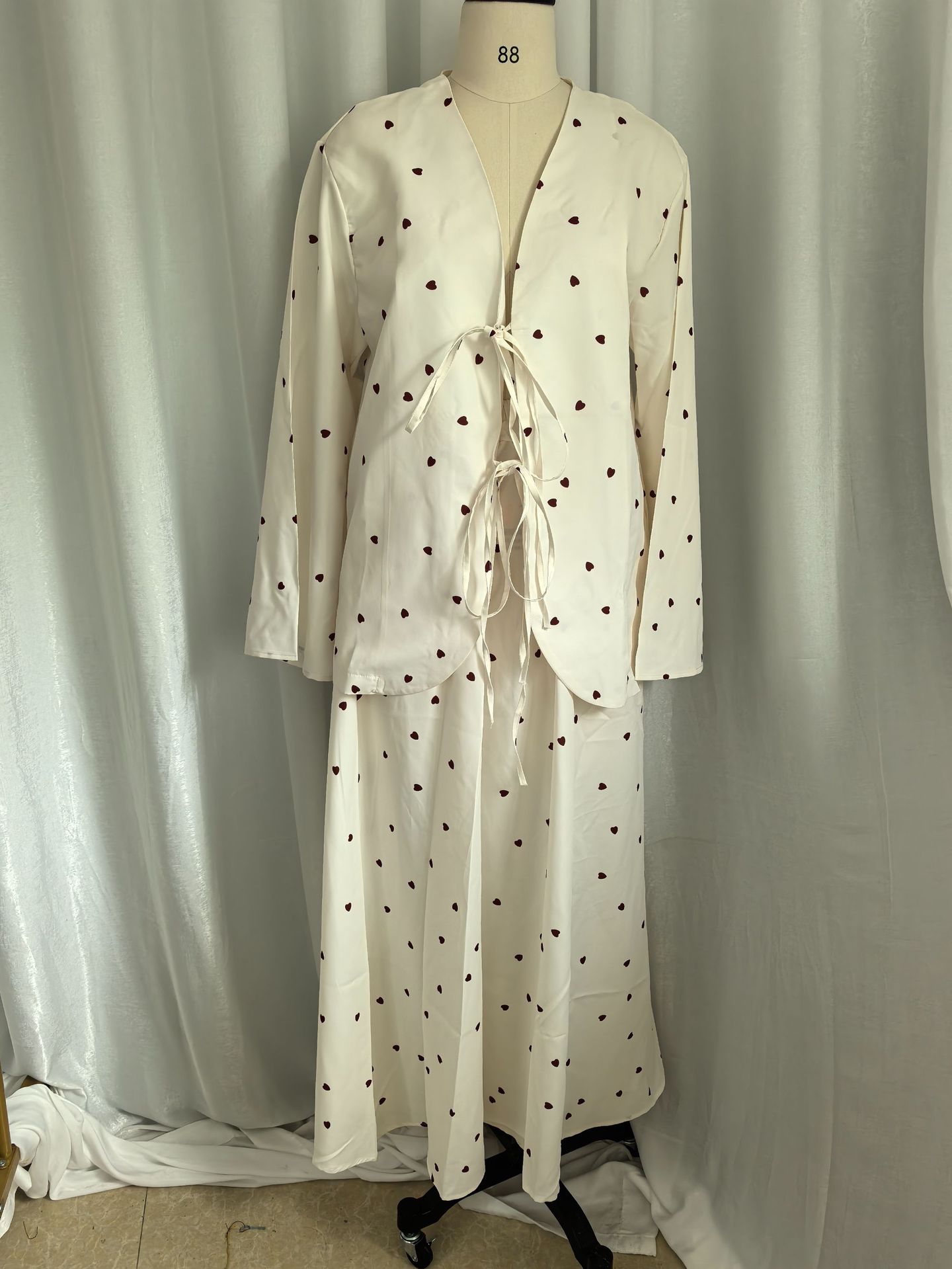 중동 아랍 국경 여성 2025 새로운 패션 느슨한 레이스 인쇄 카디건 재킷 스커트 세트