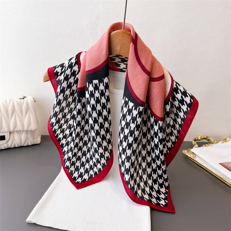 우아한 레트로 헤링본 코튼 리넨 작은 스퀘어 실크 스카프 모방 벨벳 헤드 스카프 목도리 선스크린 스카프 여성용 스카프