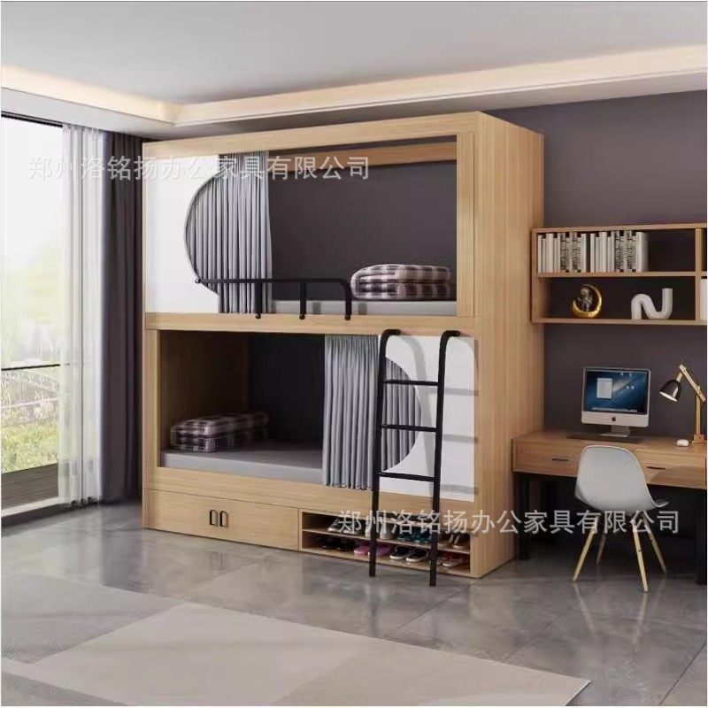높고 낮은 침대 청소년 아파트 이층 침대 전자 스포츠 호텔 침대 직원 기숙사 공간 캡슐 상부 및 하부 목재 올인 클루스토어 가기