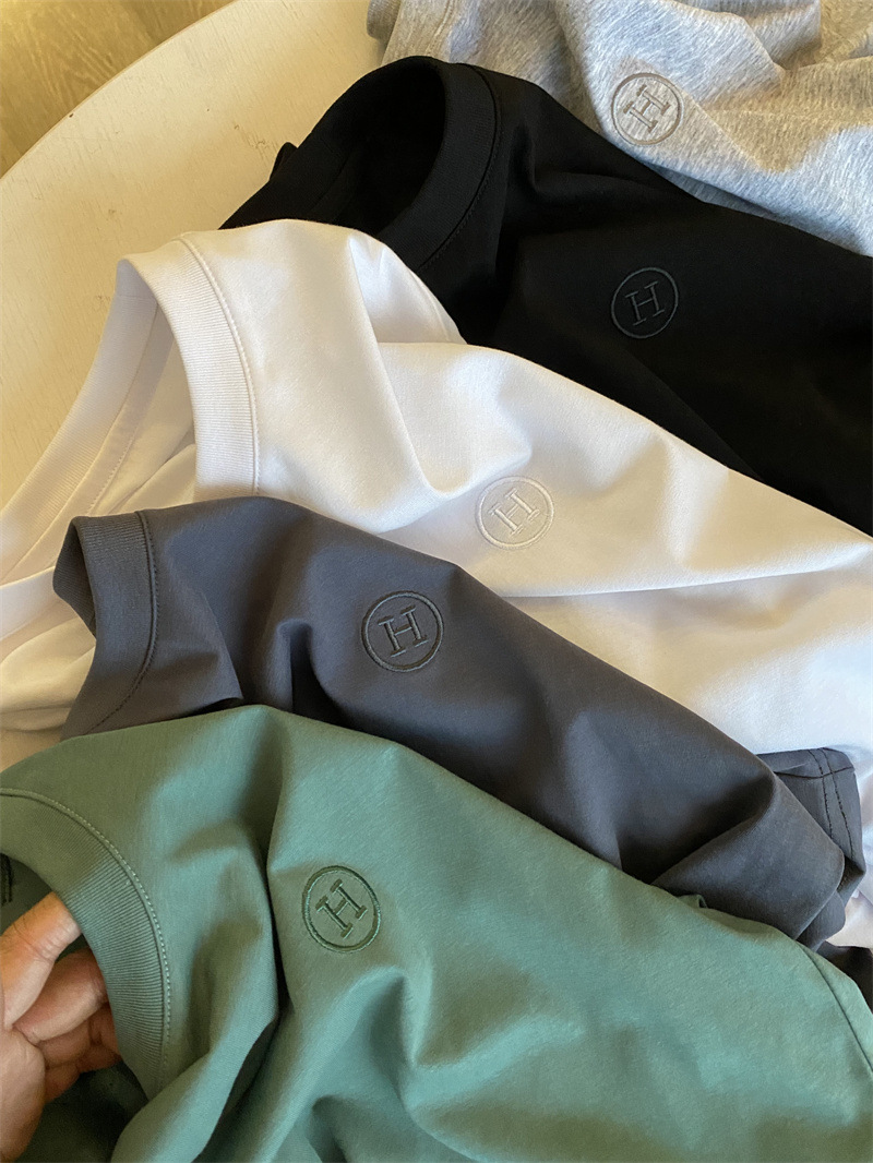 캐비닛을 철회하십시오! 입 라인의 단어! 피부 친화적 인 물 부드러운면! 초라한 세이코 편지 자수 봄과 여름 남자 단색 반팔 티셔츠