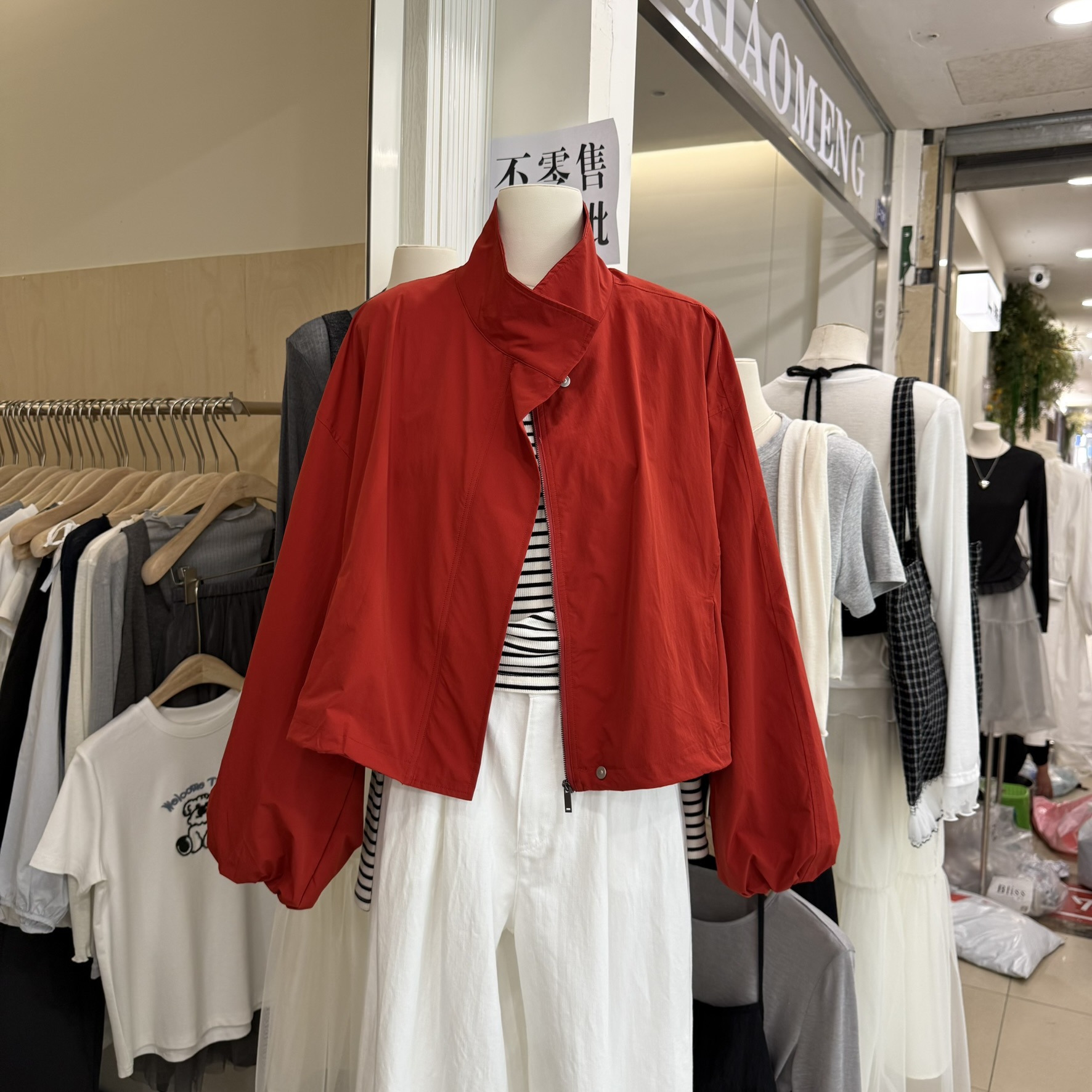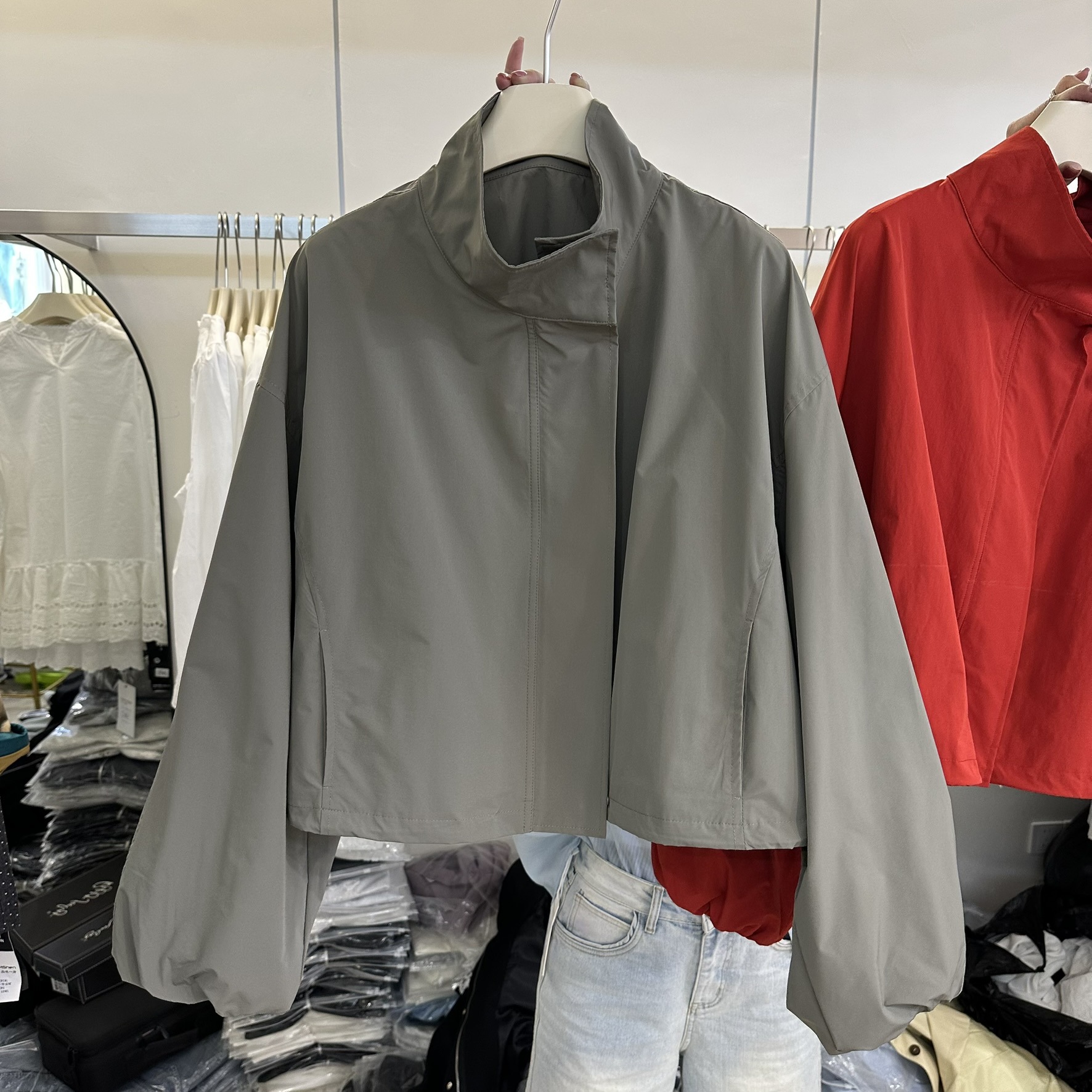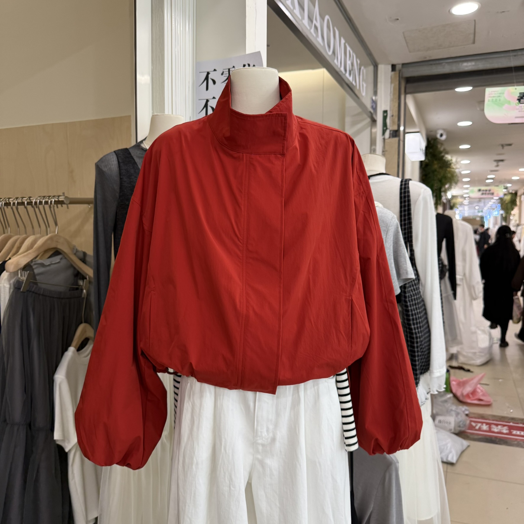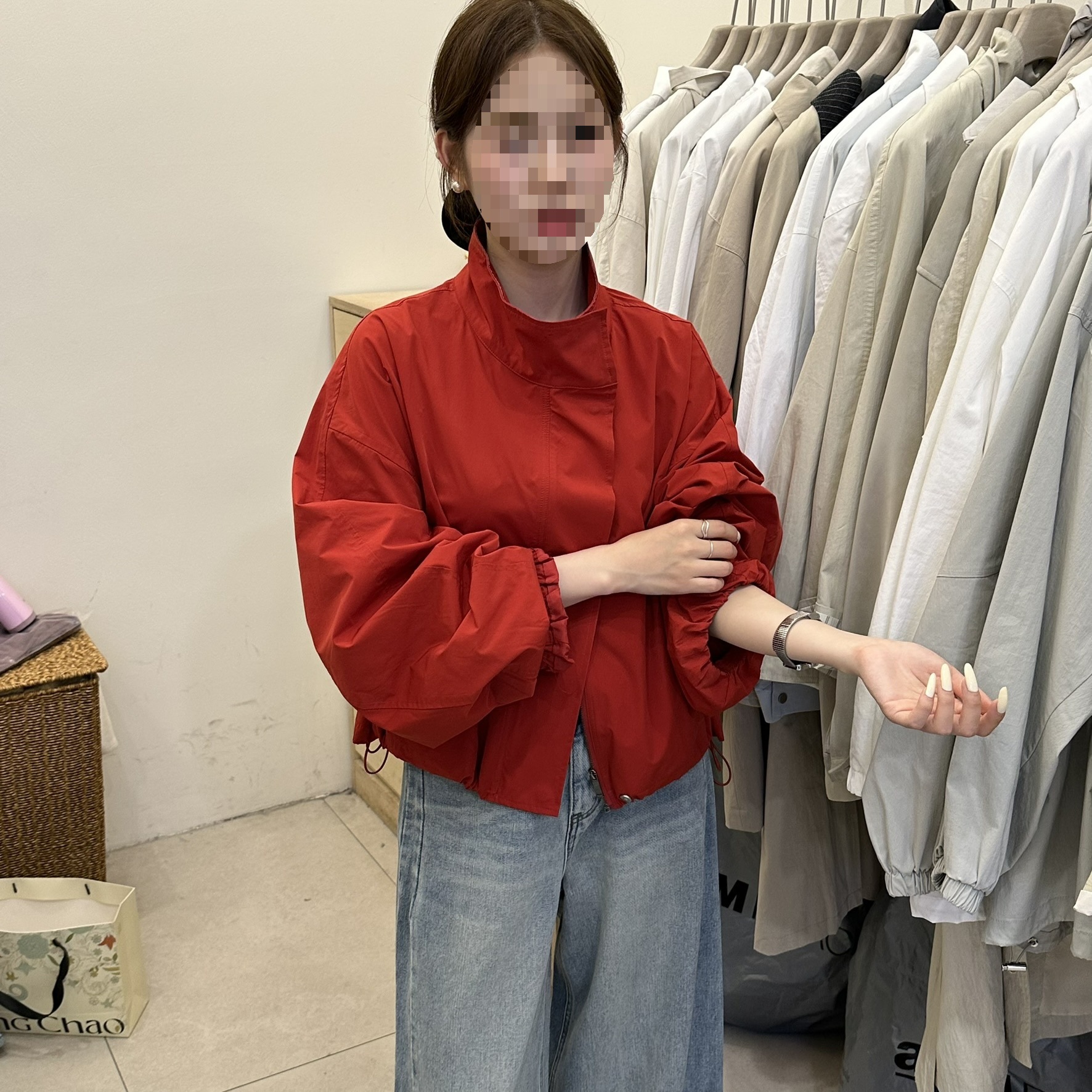 한국 레드 스탠드 칼라 실루엣 코트 여성용 짧은 코트 2025 봄 신작 캐주얼 재킷 탑스토어 가기