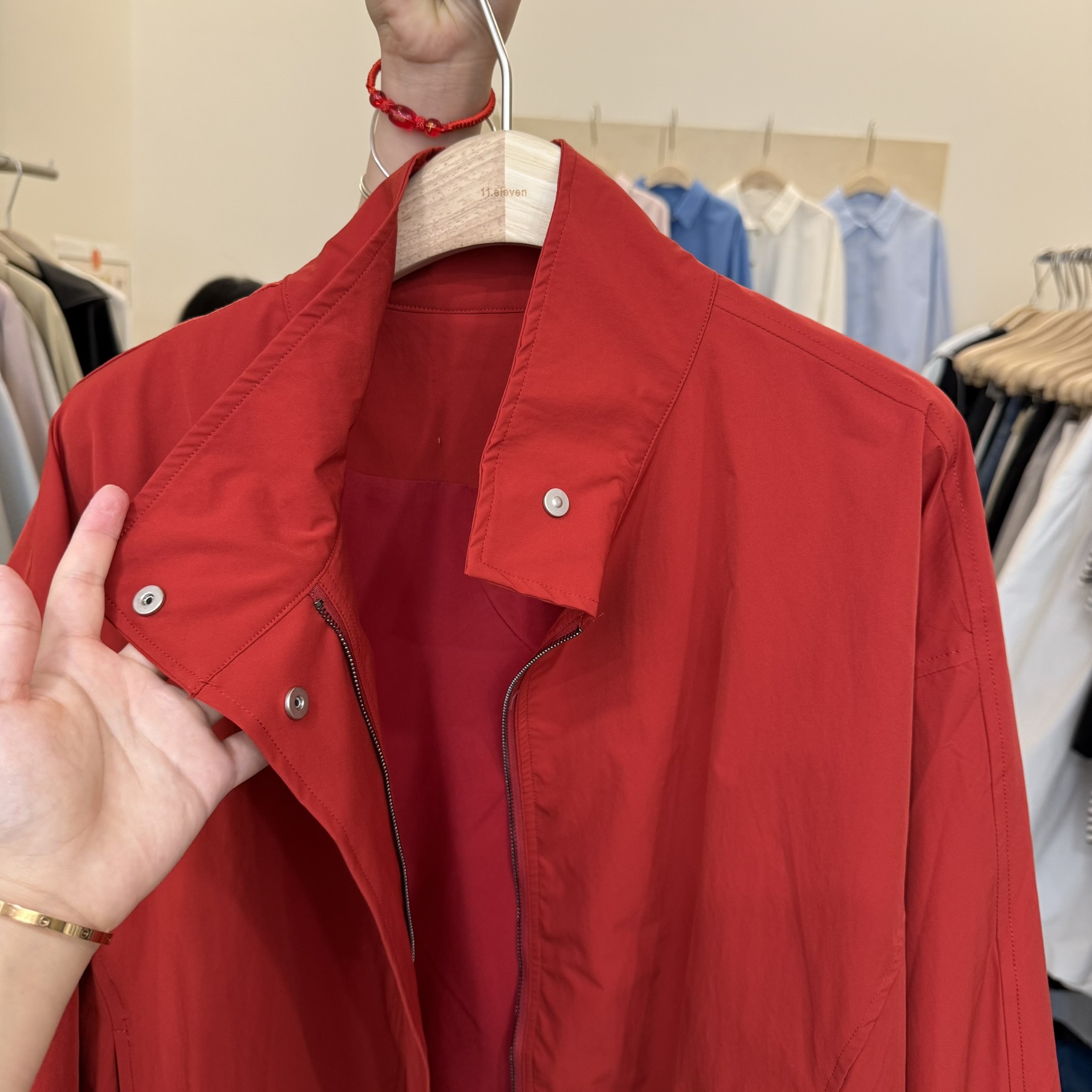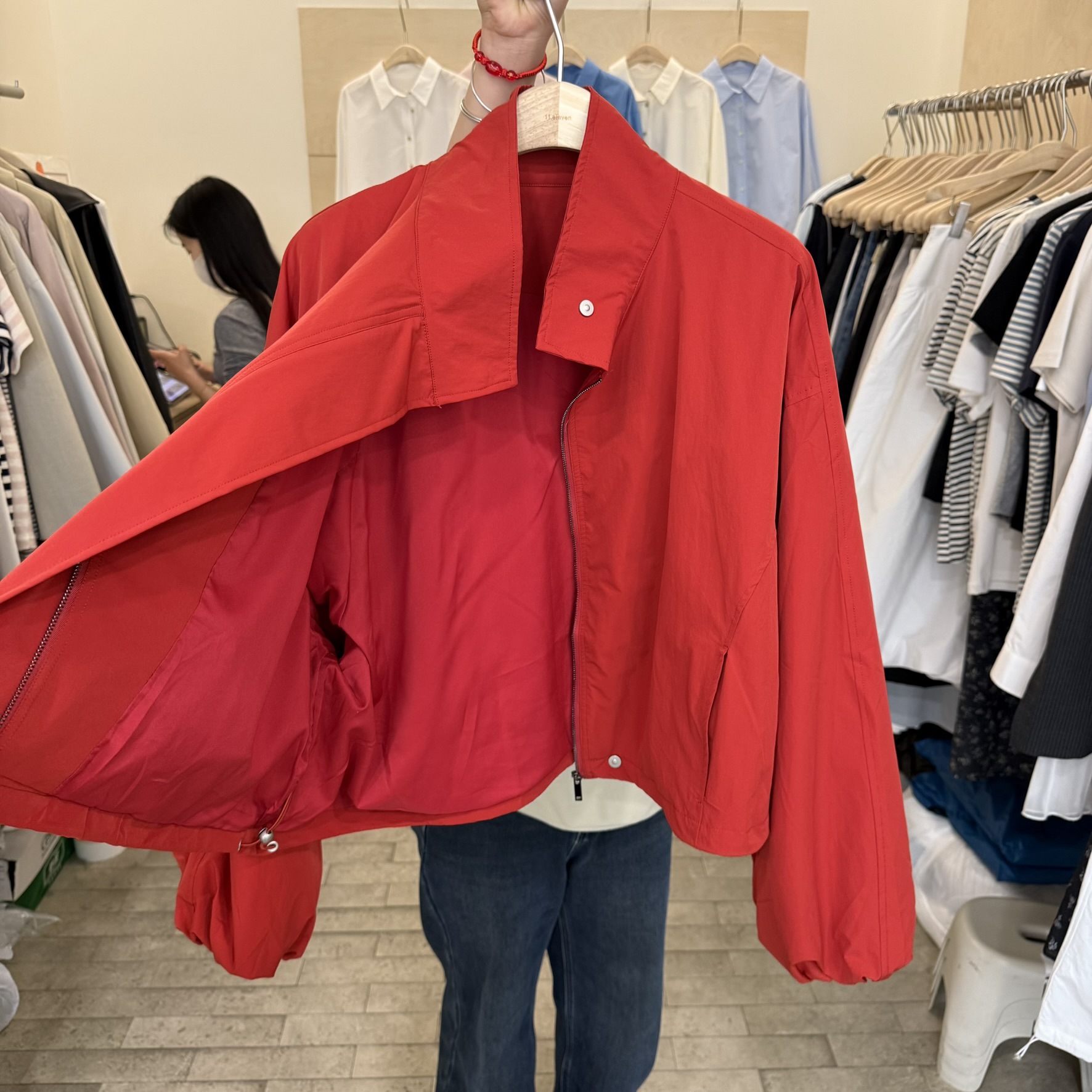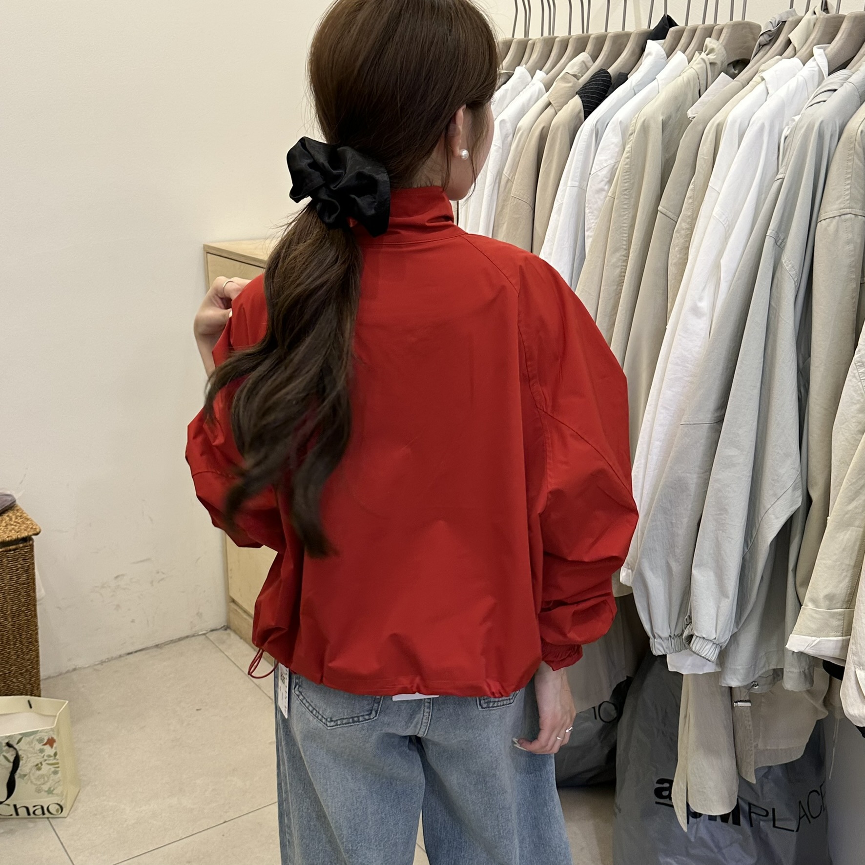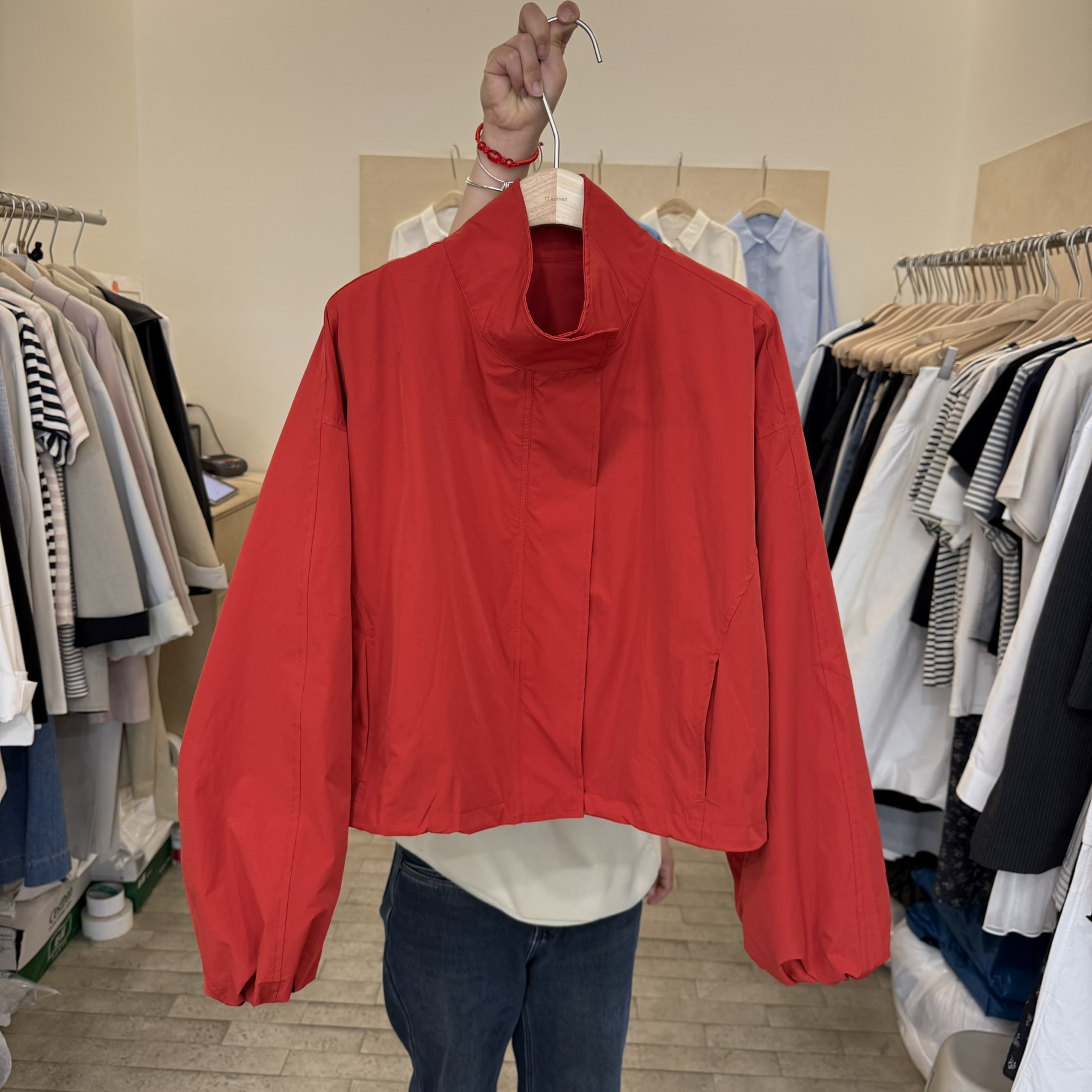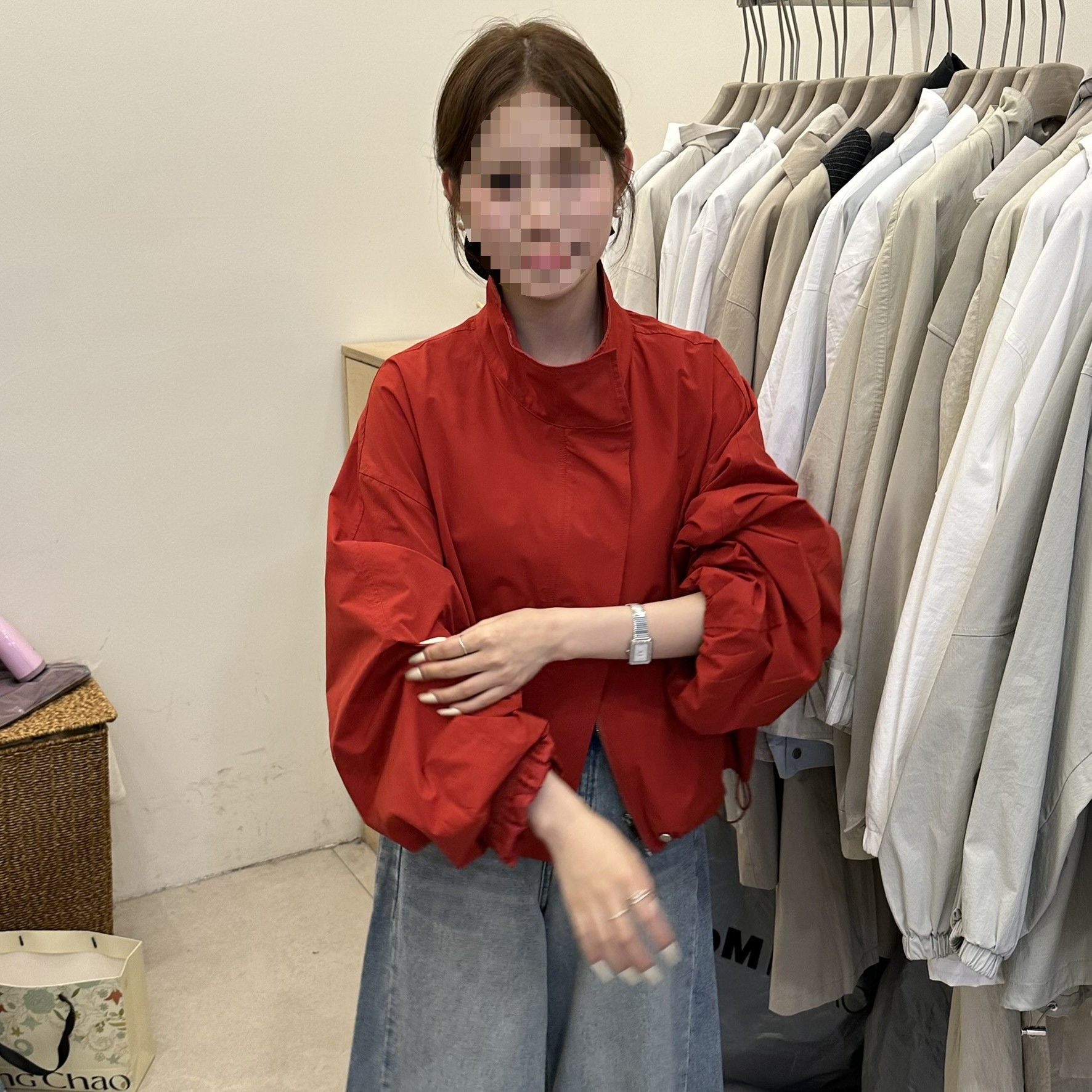 한국 레드 스탠드 칼라 실루엣 코트 여성용 짧은 코트 2025 봄 신작 캐주얼 재킷 탑스토어 가기