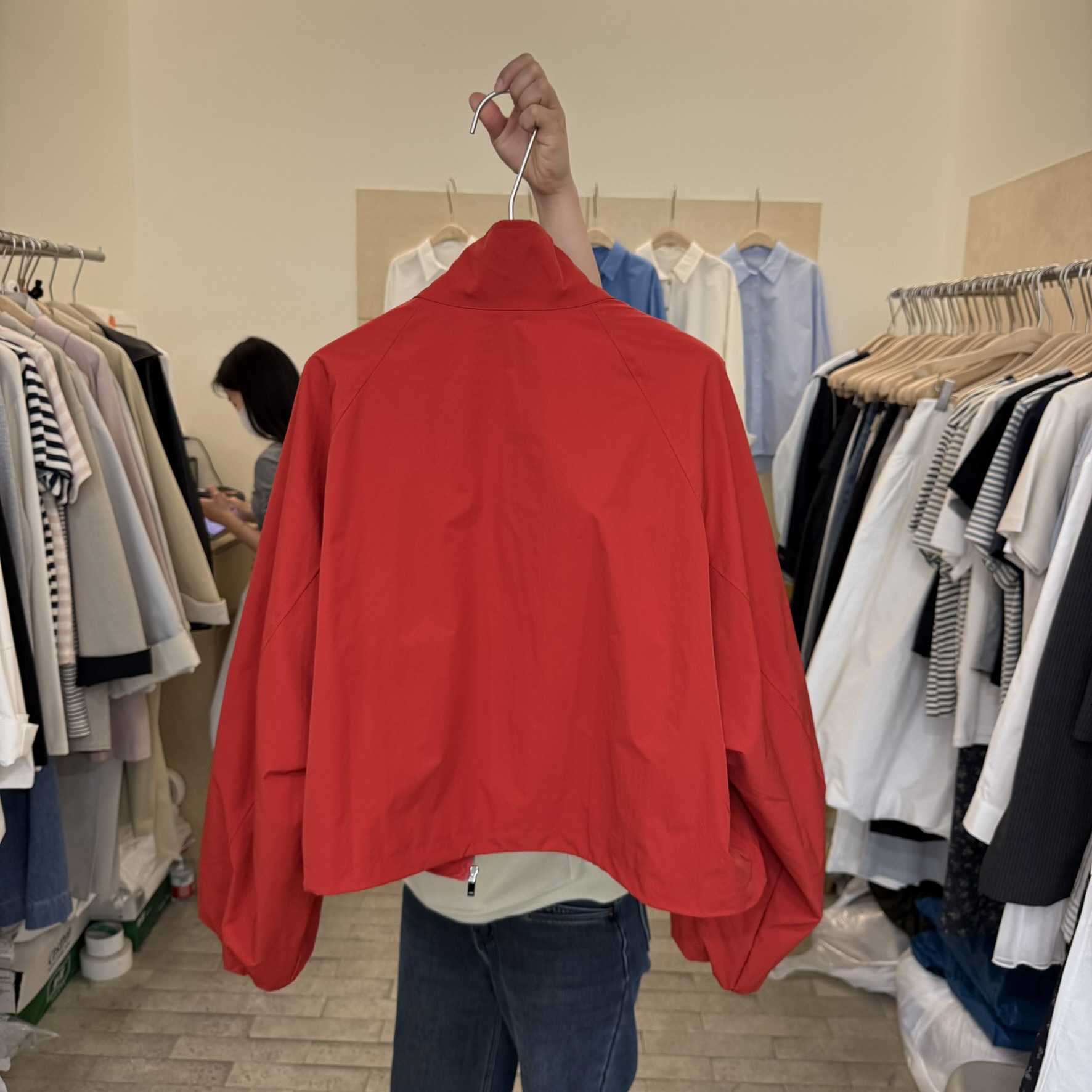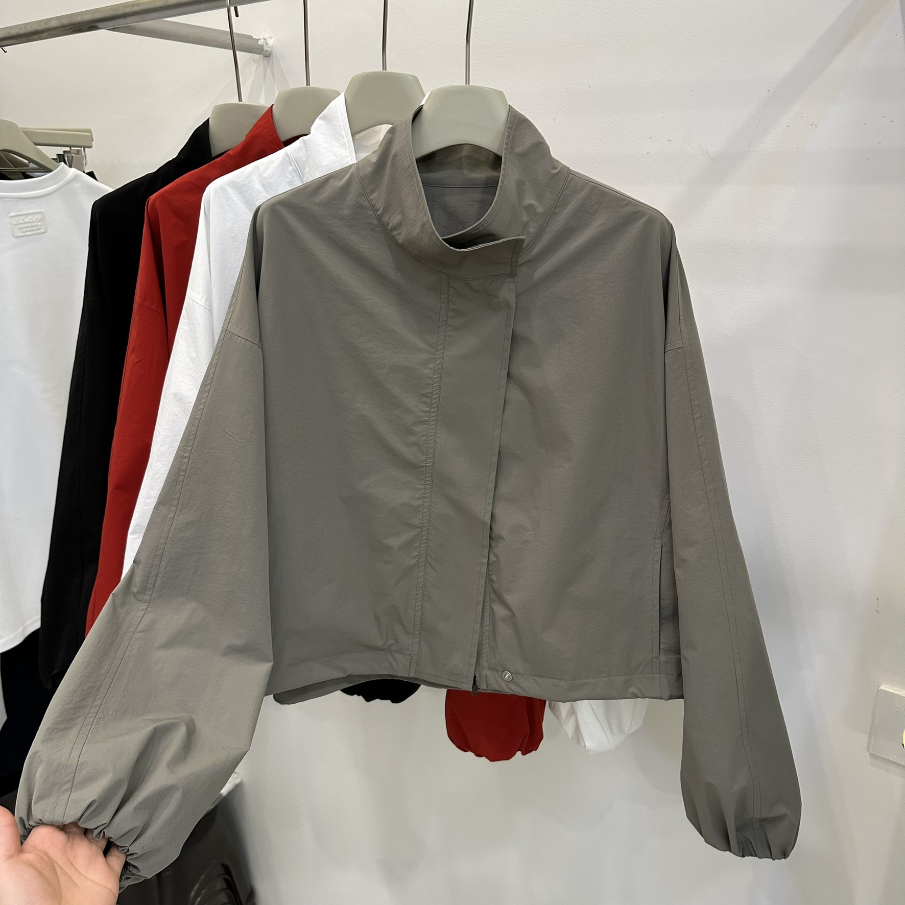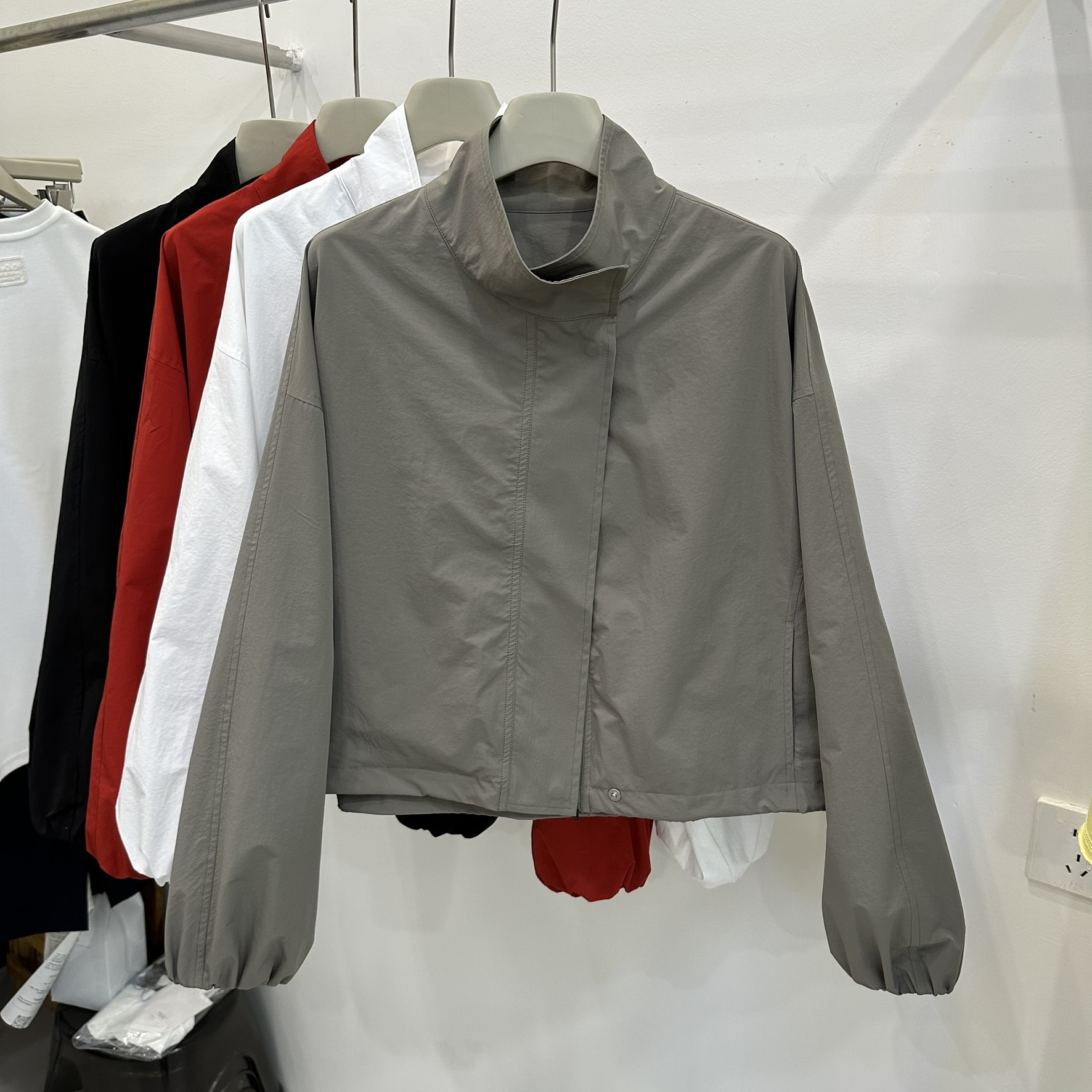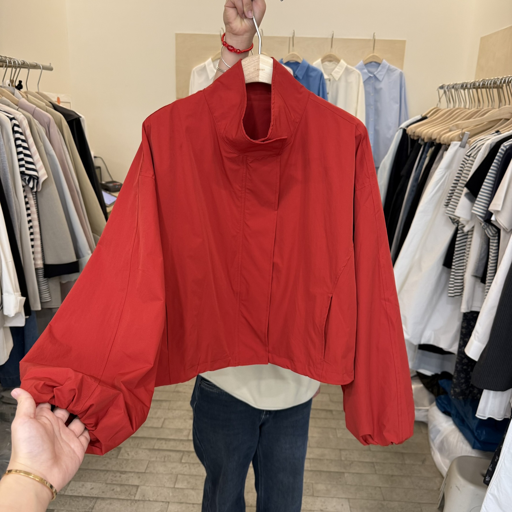 한국 레드 스탠드 칼라 실루엣 코트 여성용 짧은 코트 2025 봄 신작 캐주얼 재킷 탑스토어 가기