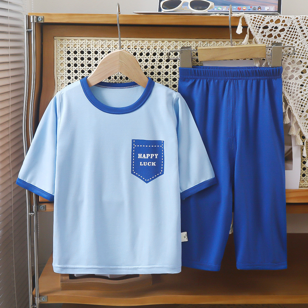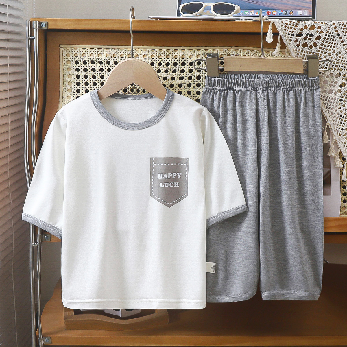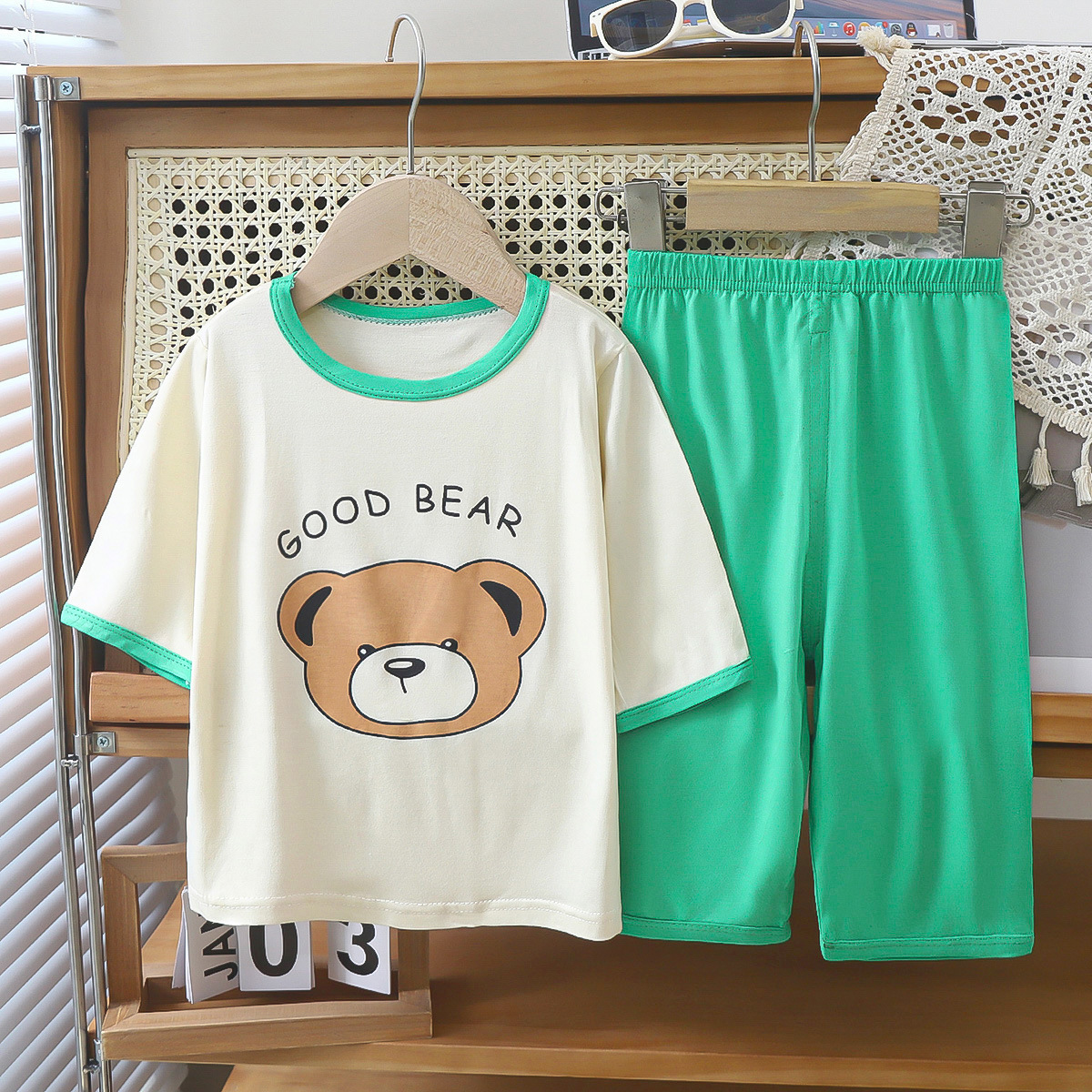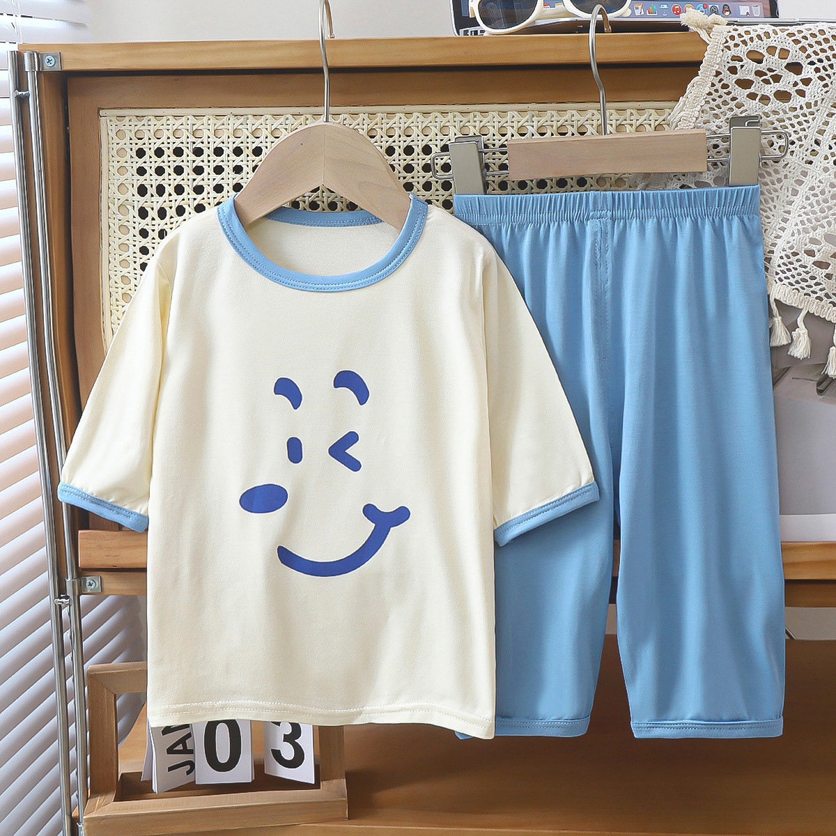 새로운 야세르 홈 옷 7 점 소매 세트 남성 보물 소녀 폭발 잠옷 여름 얇은 큰 어린이 빈 추세스토어 가기
