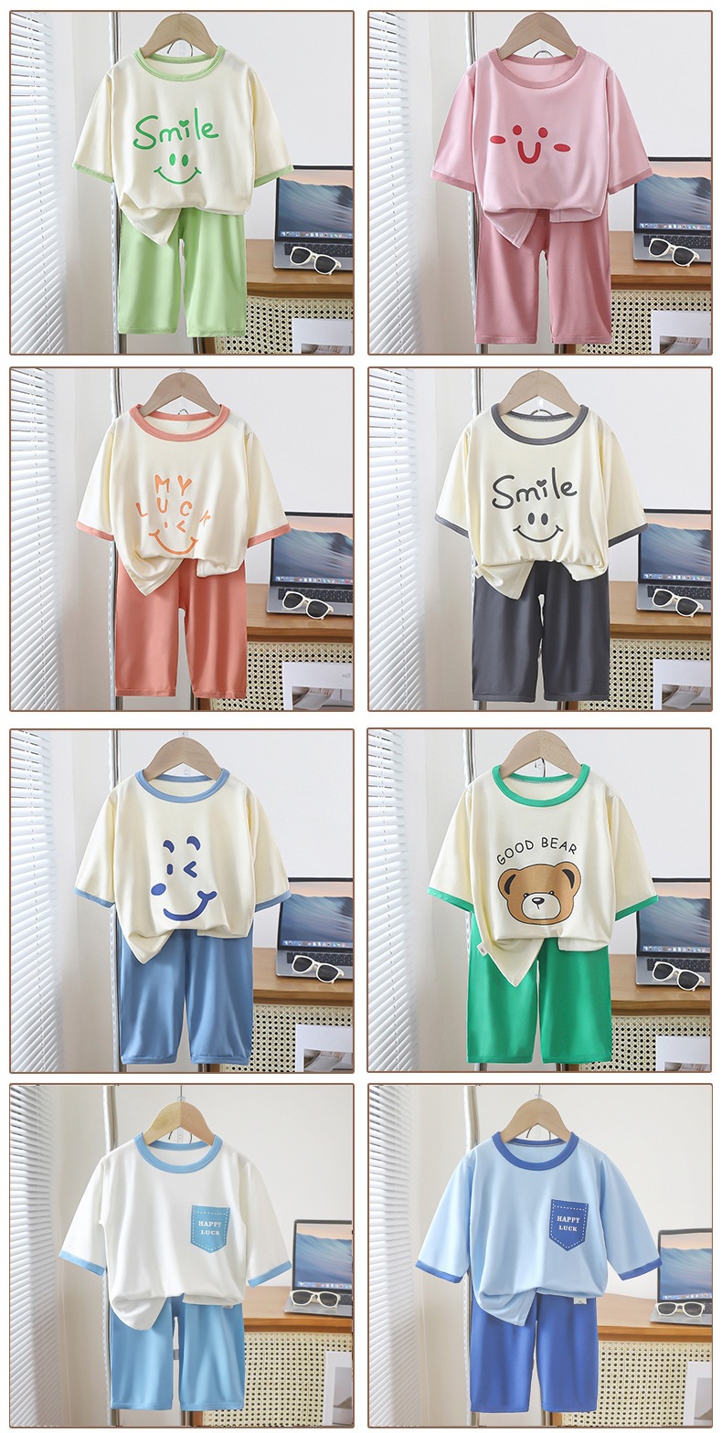 새로운 야세르 홈 옷 7 점 소매 세트 남성 보물 소녀 폭발 잠옷 여름 얇은 큰 어린이 빈 추세