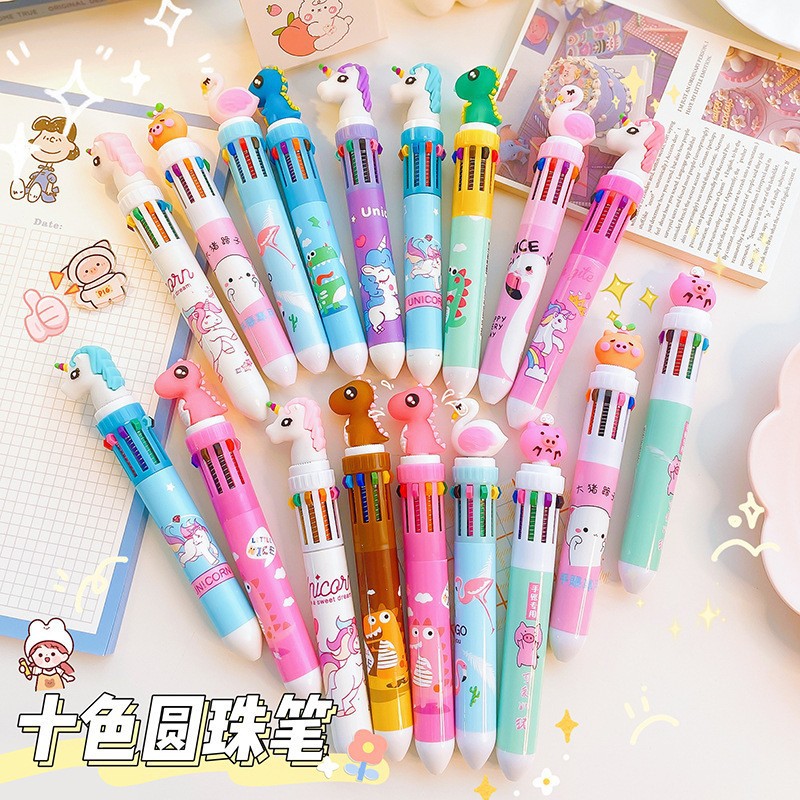 높은 색상 가치 창조적 인 만화 실리콘 10 색 볼펜 귀여운 프레스 10 색 볼펜 학생 다색 볼펜스토어 가기