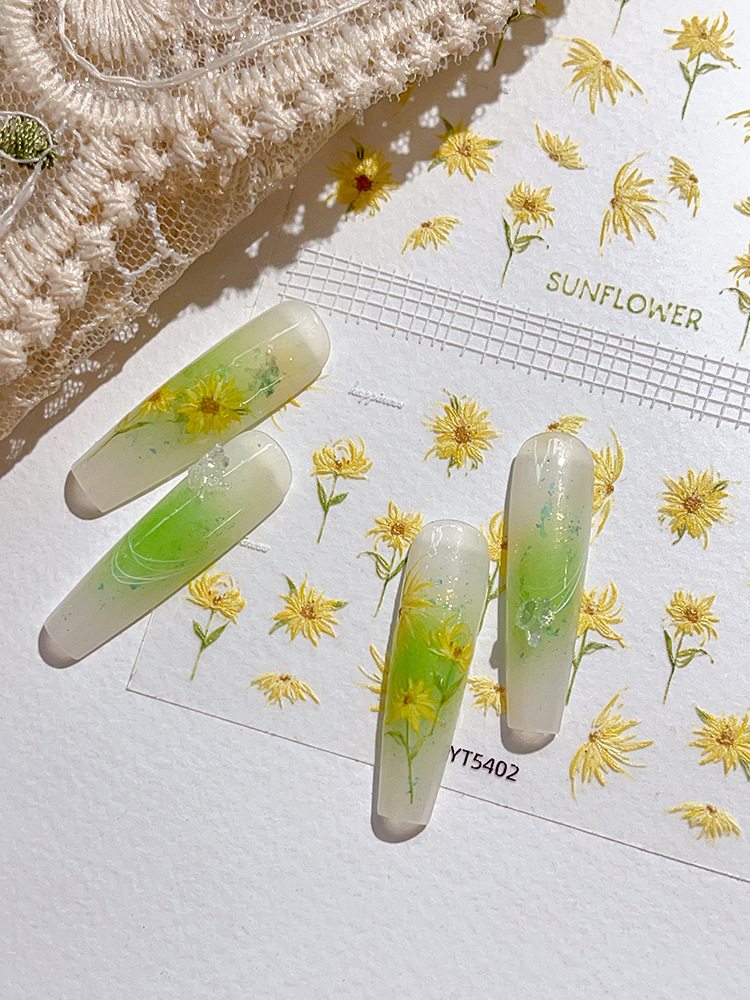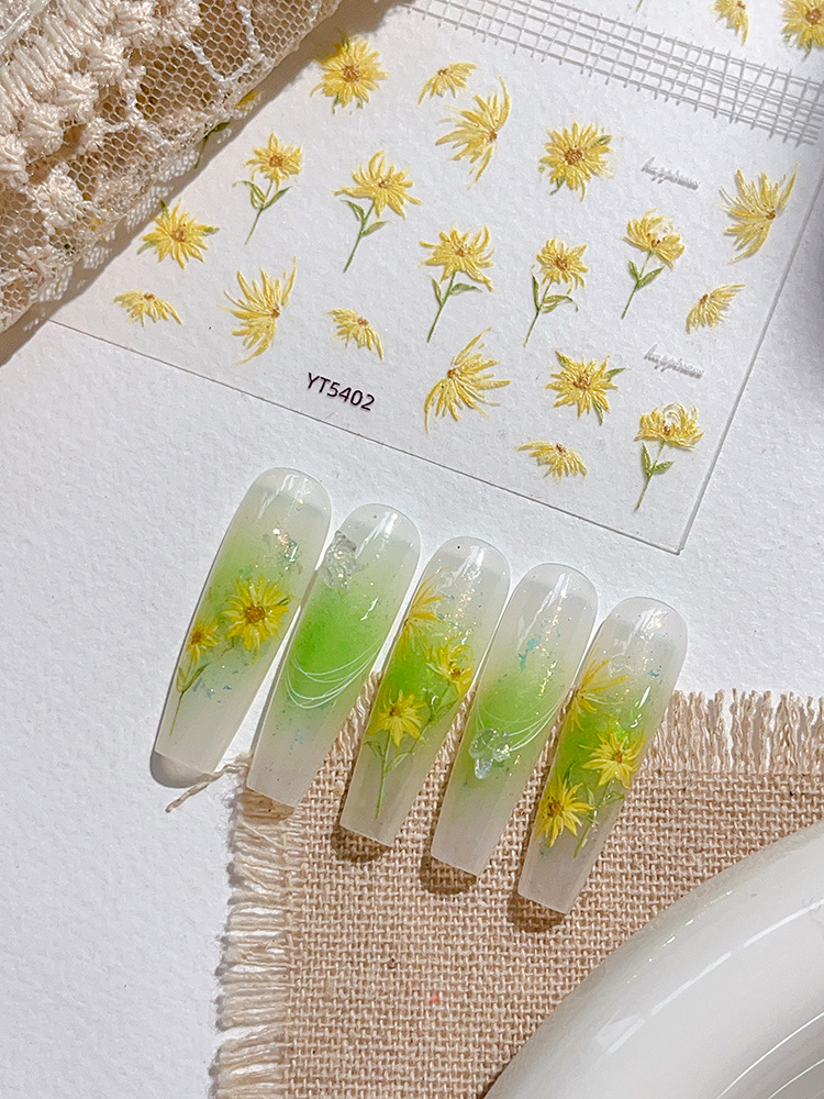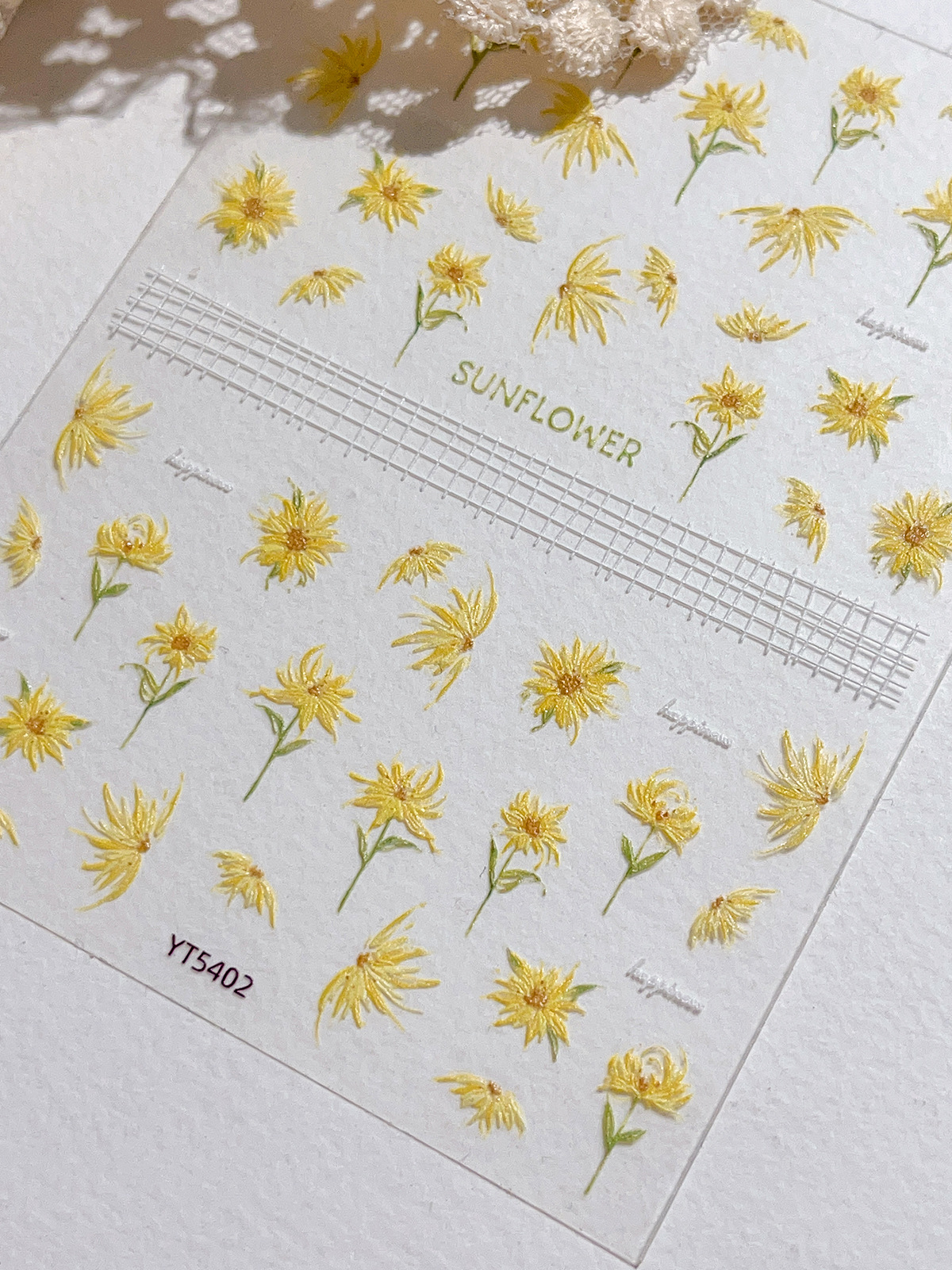 YITU 개미 그림 구호 해바라기 네일 아트 스티커 귀여운 꽃 꽃 영어 체크 무늬 인터넷 빨간 장식 스티커 YT5402