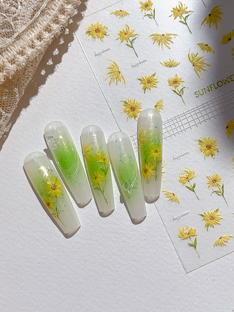 YITU 개미 그림 구호 해바라기 네일 아트 스티커 귀여운 꽃 꽃 영어 체크 무늬 인터넷 빨간 장식 스티커 YT5402스토어 가기