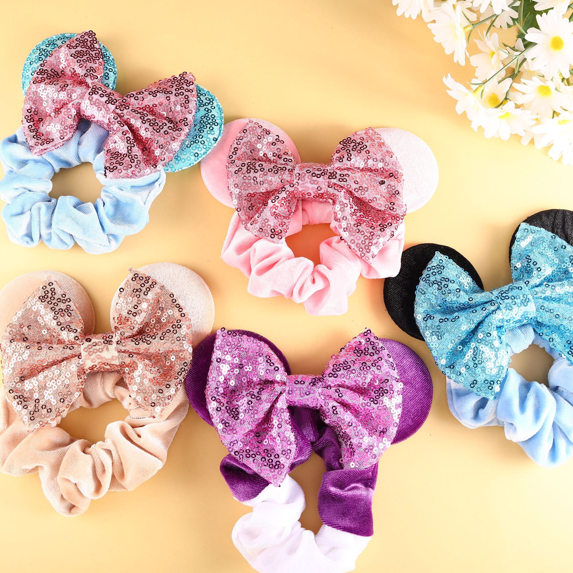 유럽과 미국의 국경 간 어린이 미키 헤어 링 플란넬 대장 헤어 링 크리스마스 휴일 스팽글 나비 헤어 액세서리 헤어 링