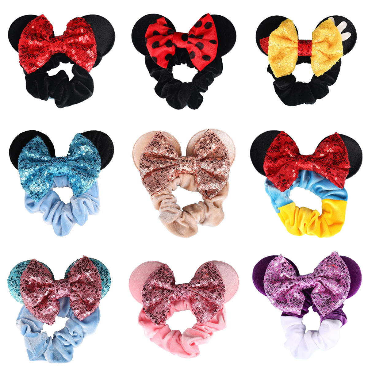 유럽과 미국의 국경 간 어린이 미키 헤어 링 플란넬 대장 헤어 링 크리스마스 휴일 스팽글 나비 헤어 액세서리 헤어 링스토어 가기