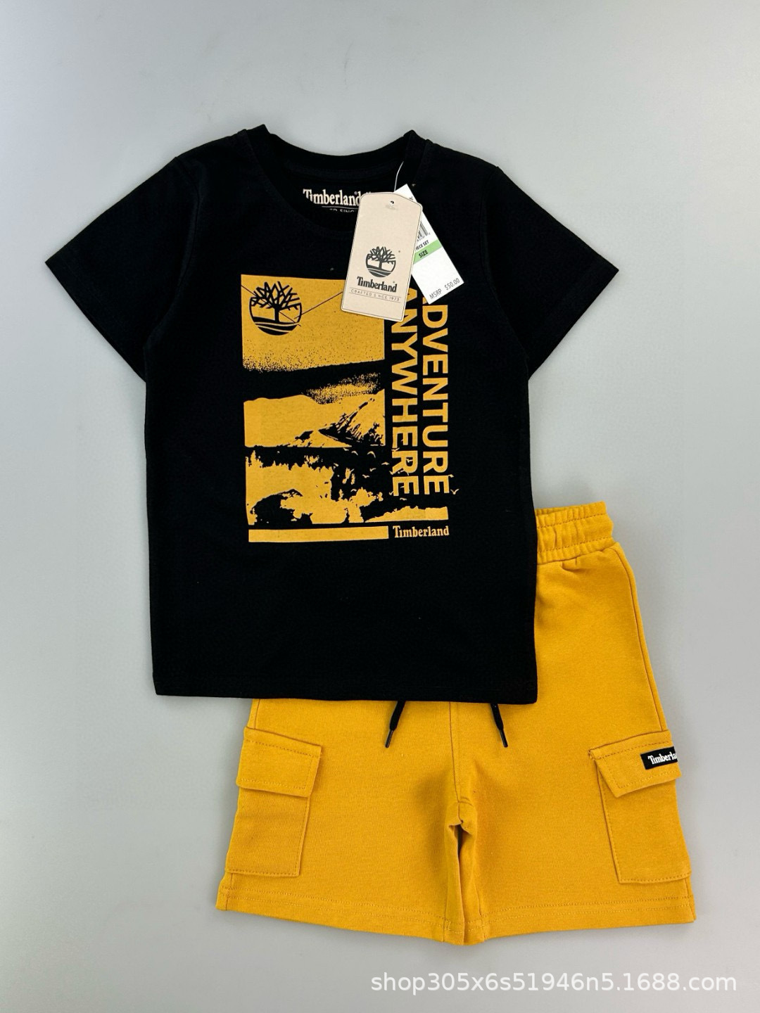 [한 손으로 배치] 새로운 컬러 믹스 브랜드 대외 무역 아동복 반팔 세트 아기 여름 세트