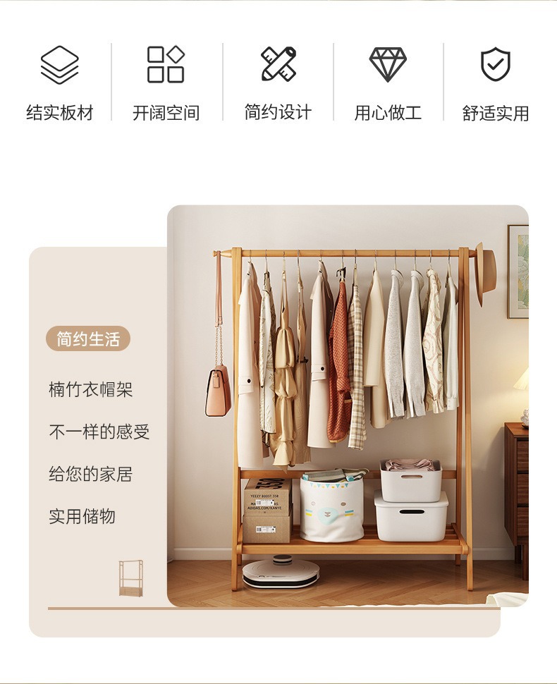 옷걸이 바닥 침실 속옷 모자 선반 간단한 옷 보관 비 단단한 나무 호텔 가정용 의류 랙로드