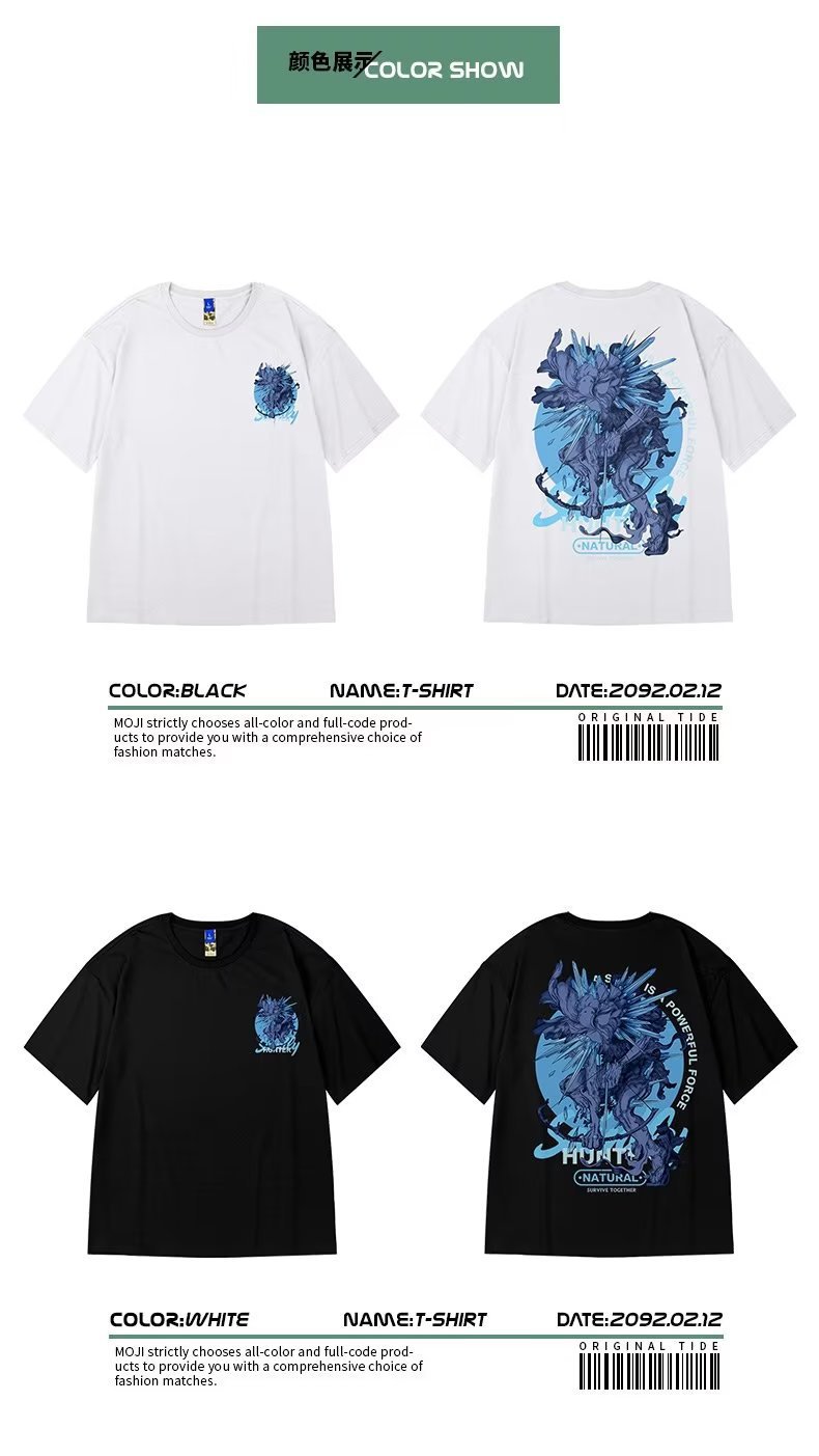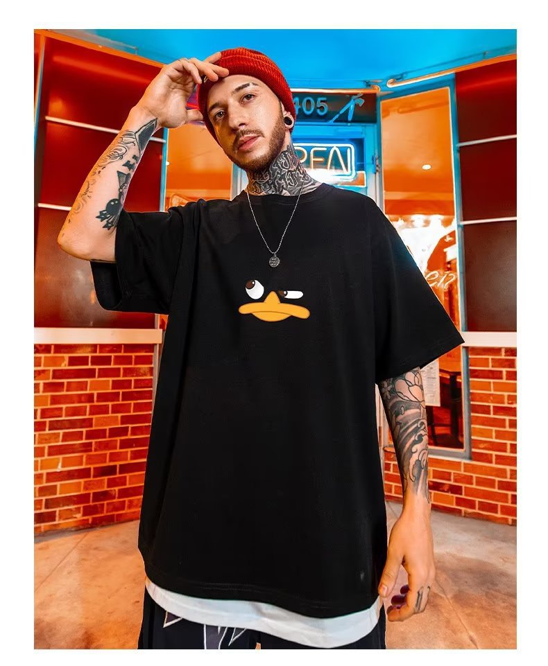 아메리칸 트렌디 브랜드 루즈 팻 티셔츠 반팔 5부 소매 뉴 블랙 플러스 사이즈 남성 여름 8 크로스보더스토어 가기