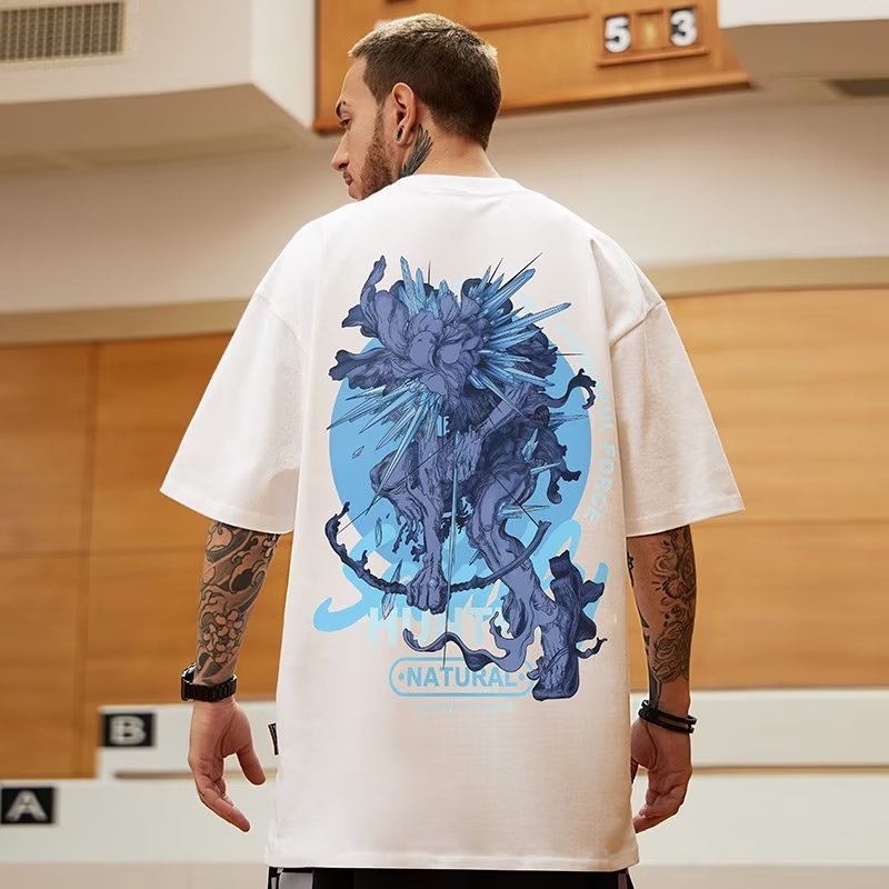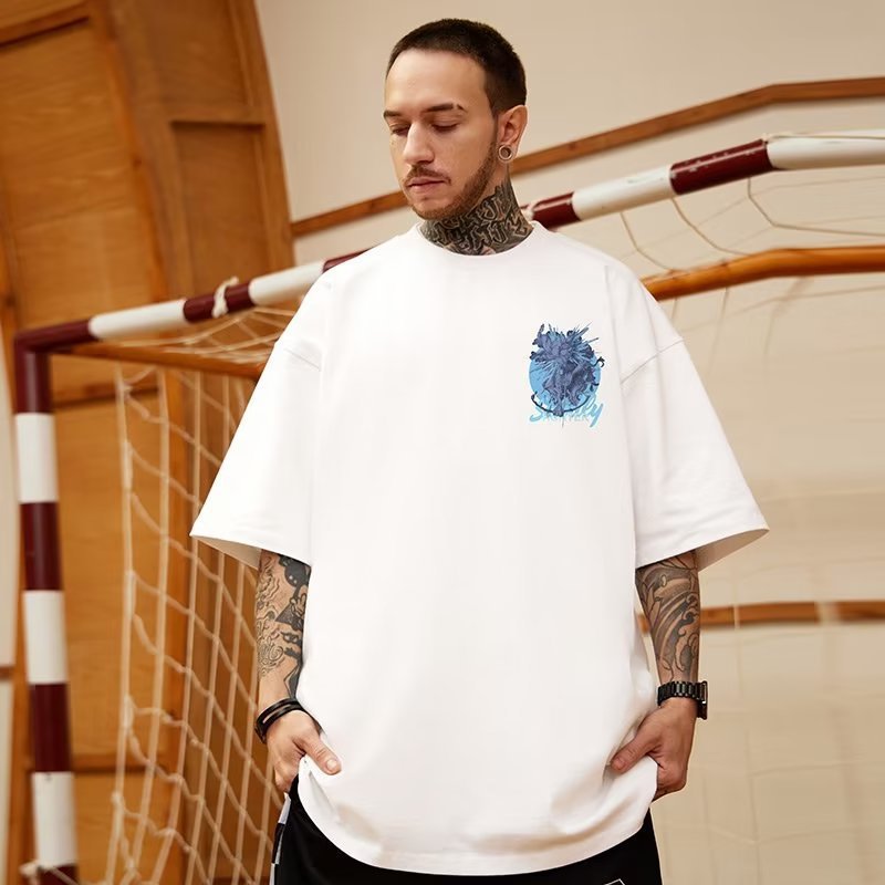 아메리칸 트렌디 브랜드 루즈 팻 티셔츠 반팔 5부 소매 뉴 블랙 플러스 사이즈 남성 여름 8 크로스보더