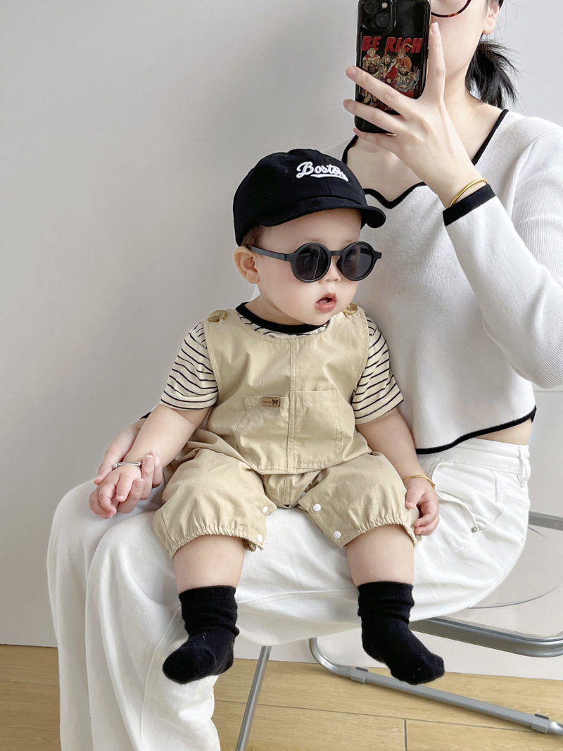 [티셔츠 멜빵 세트] 아기 여름 세트 점프 수트 면 투피스 아기 소년 소녀 옷 조수를 등반