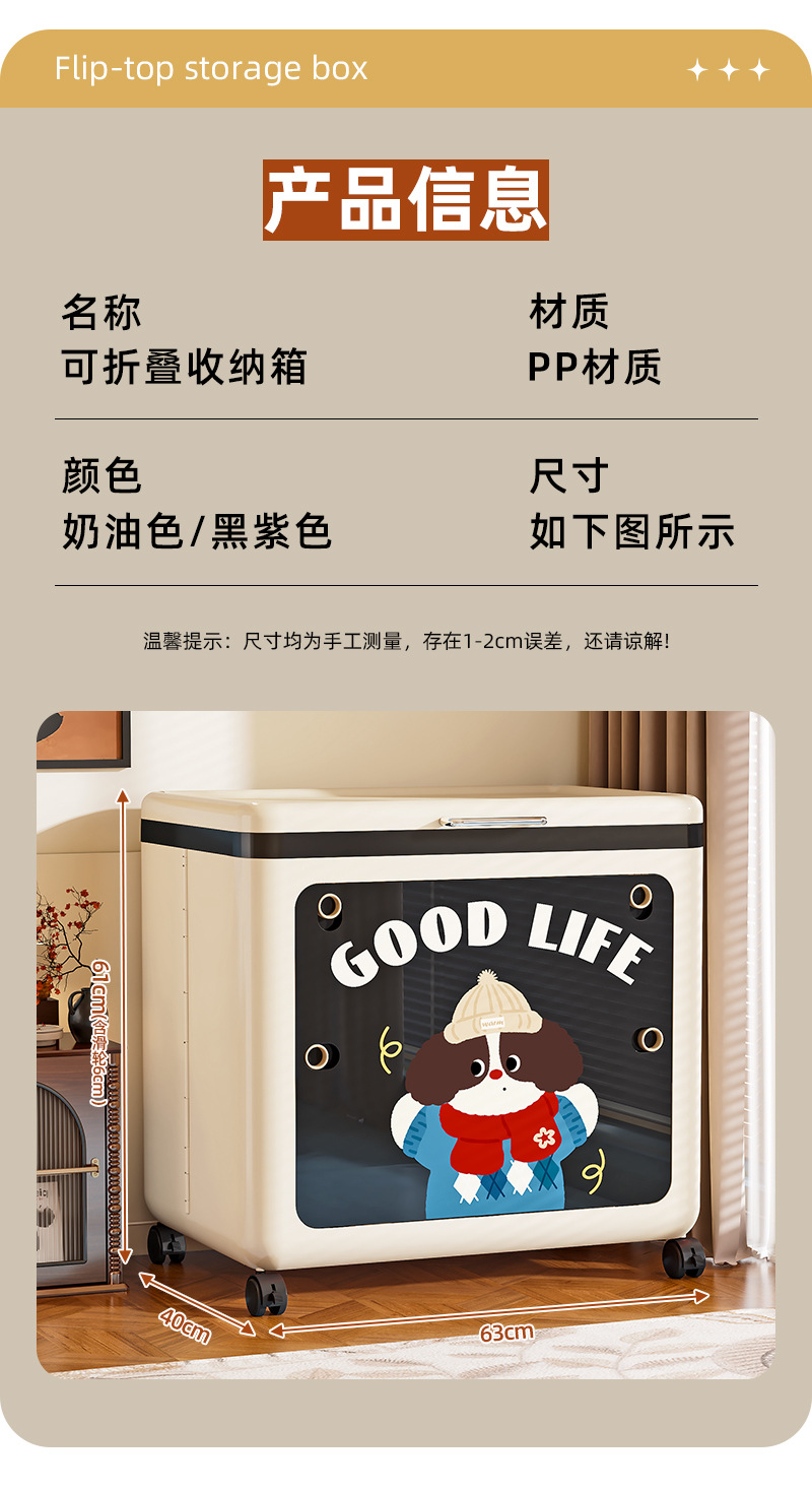 대용량 플립탑 수납함 가정용 침실 거실 의류 장난감 수납장 플라스틱 방진 접이식 수납장