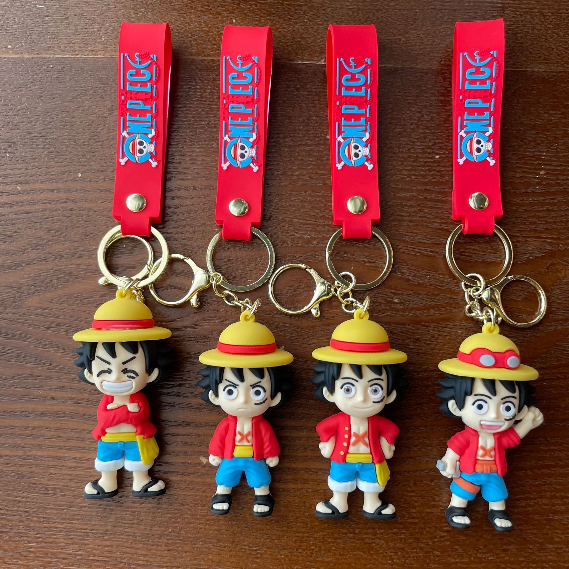 원피스 루피 키 체인 입체 만화 인형 자동차 열쇠 고리 학교 가방 펜던트 인형 뽑기 기계 작은 선물