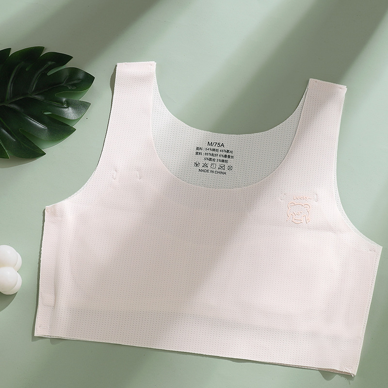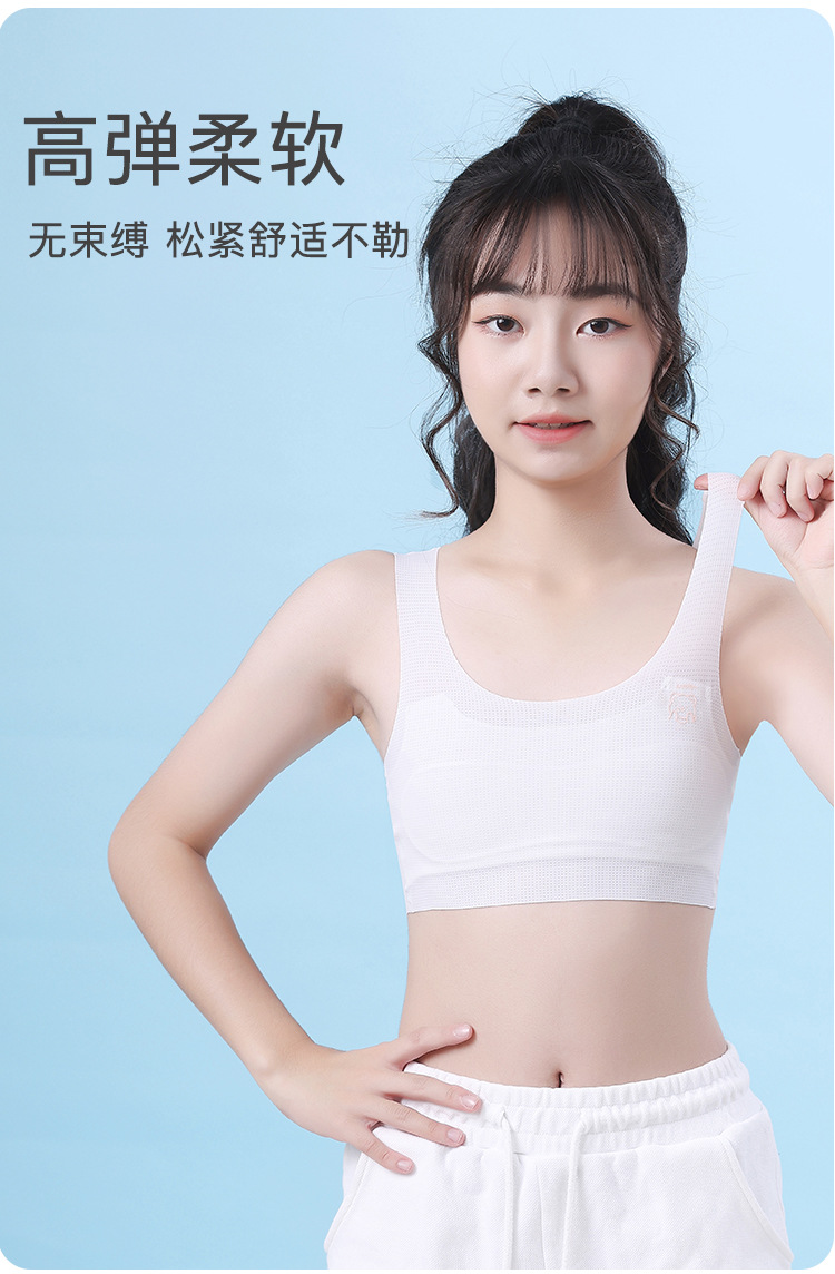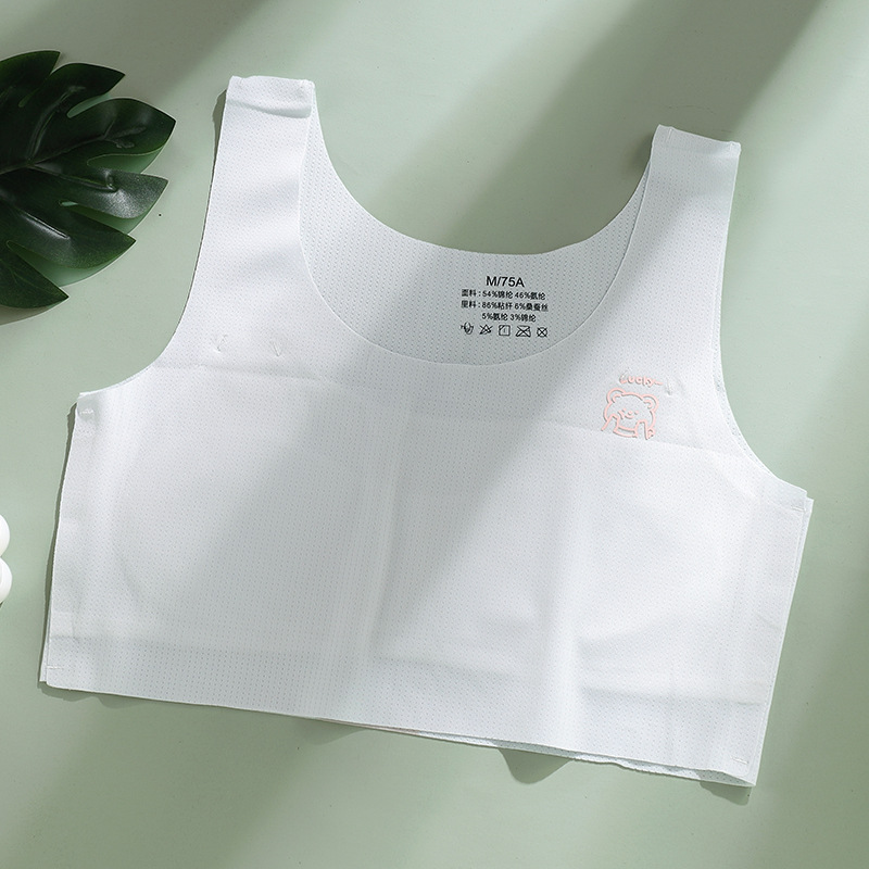 여자 속옷 8-12 세 여자 브래지어 메쉬 뽕나무 실크 통기성 개발 기간 작은 조끼 안티 범프 여름 초기