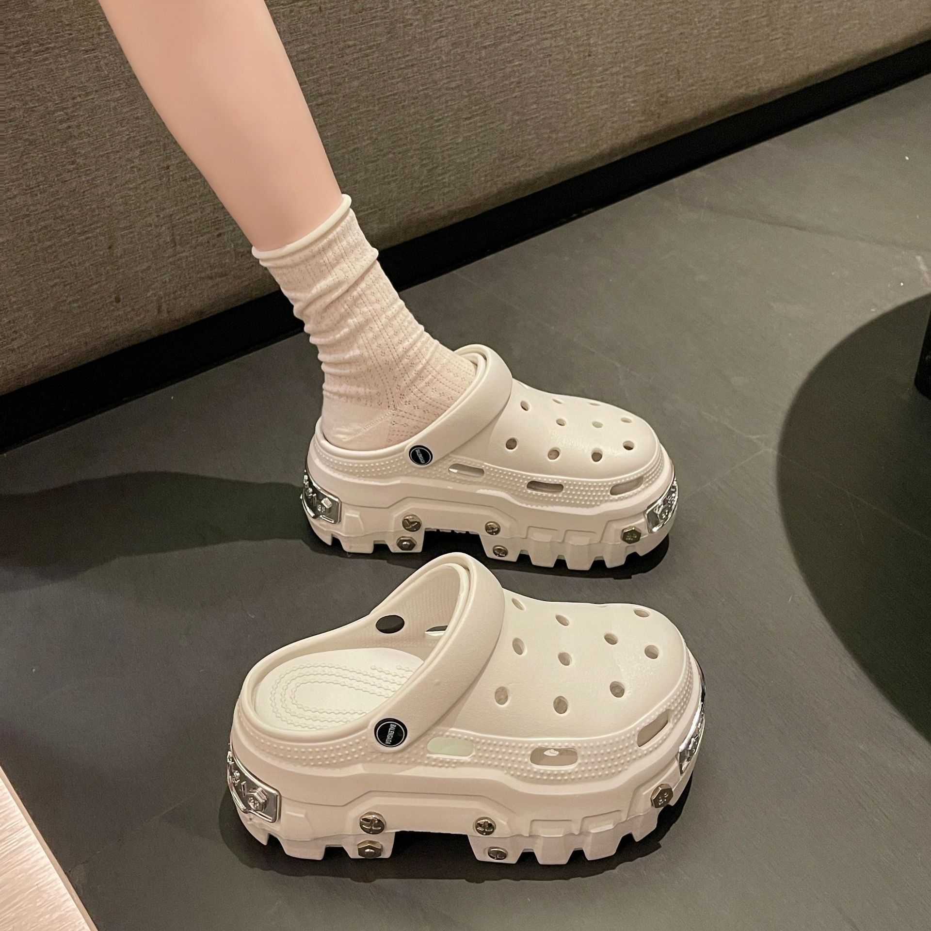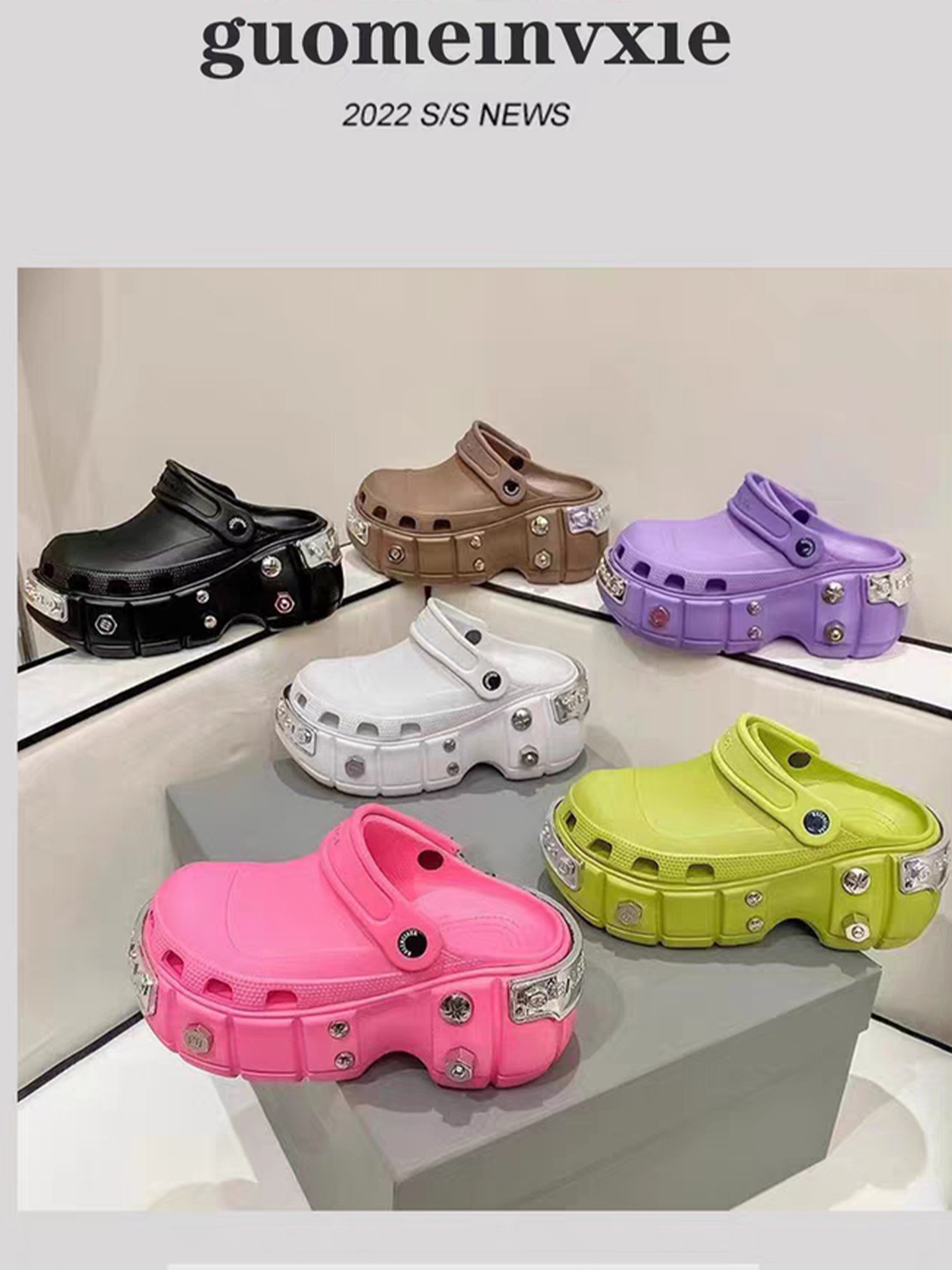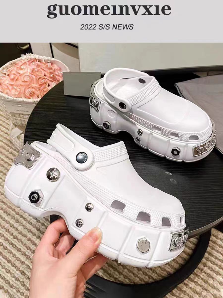 花园鞋 一字拖 厚底拖鞋 增高洞洞鞋 增高拖鞋 巴黎