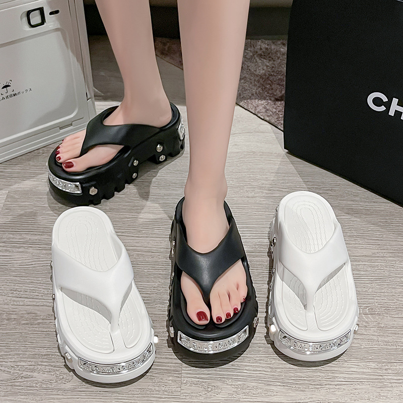 여름 아우터용 여성용 파리 스트리트 두꺼운 밑창 발가락 구멍 신발 남성용 EVA 높이 증가 슬리퍼 크로스보더 대외 무역 도매스토어 가기