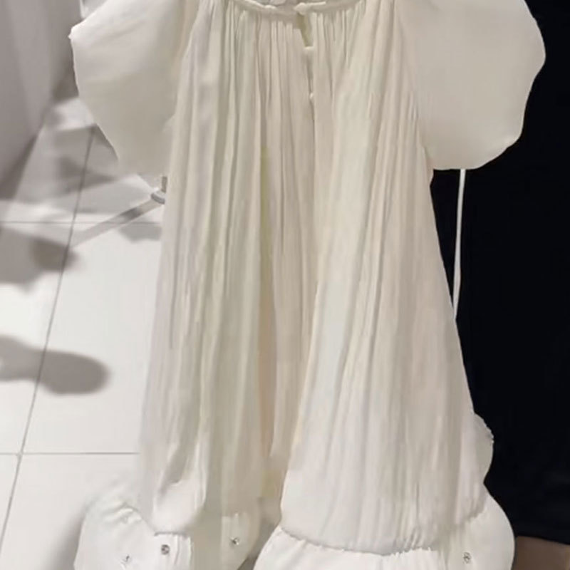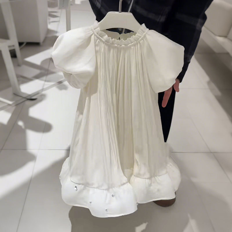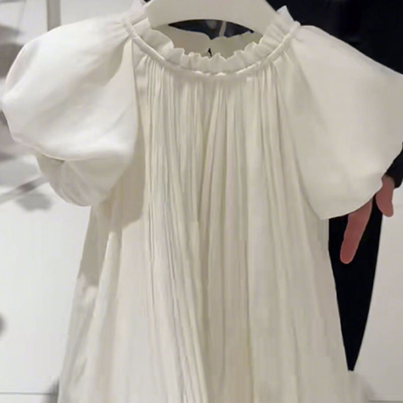 여자 원피스 어린이 치마 반팔 여름 2025 새로운 슈퍼 잘 생긴 긴 치마 얇은 소녀 하이 엔드 화이트 스커트