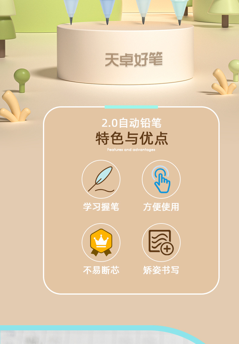 초등학생을 위한 자세교정펜, 3학년 학습용 특수 자동연필 2.0 교체형 두꺼운 코어 자세교정 활동펜스토어 가기