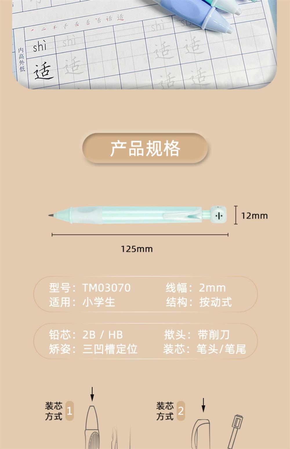 초등학생을 위한 자세교정펜, 3학년 학습용 특수 자동연필 2.0 교체형 두꺼운 코어 자세교정 활동펜