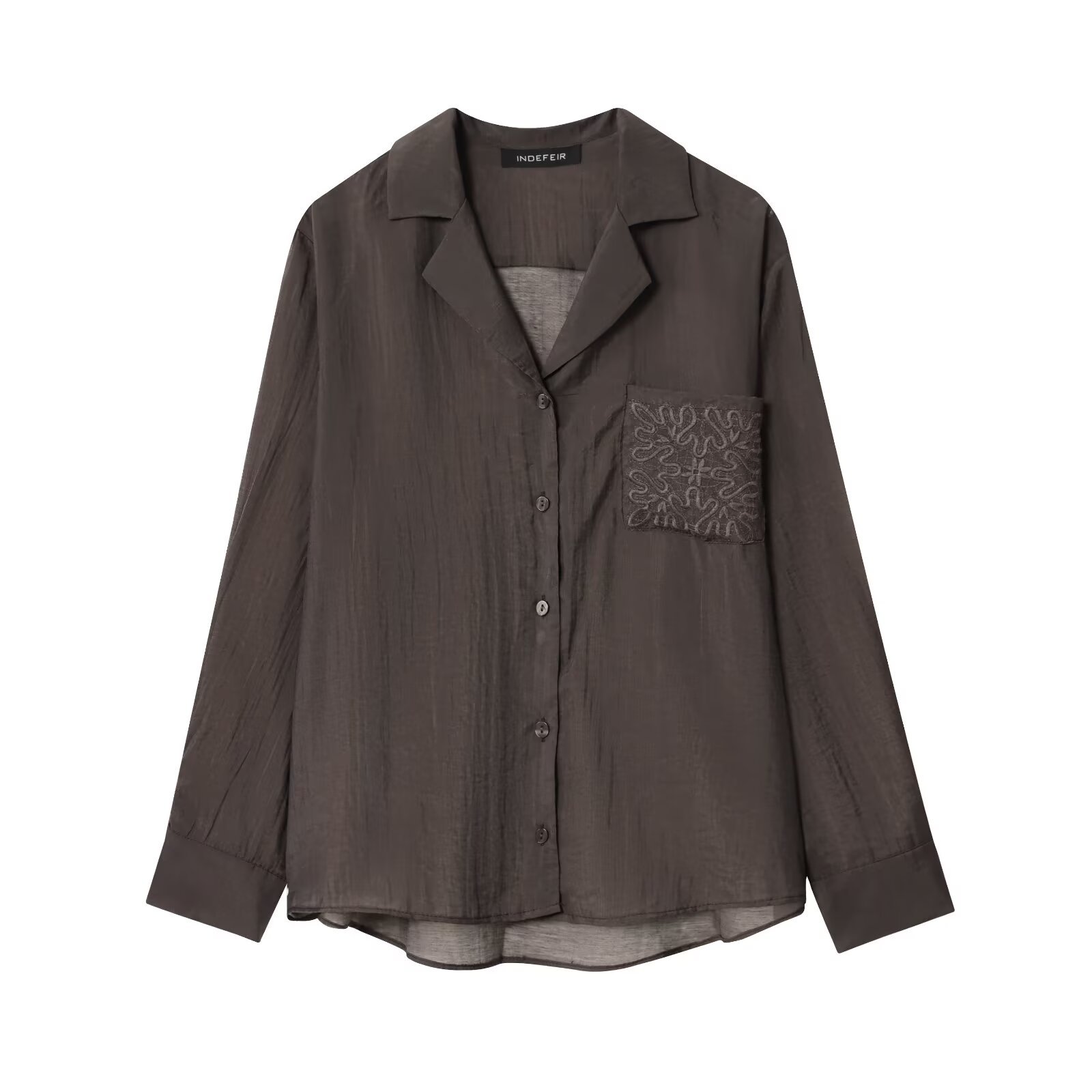 2025 가을 신상 유럽 및 미국 해외 여성 패션 자수 포켓 장식 긴팔 셔츠 w085 245521스토어 가기