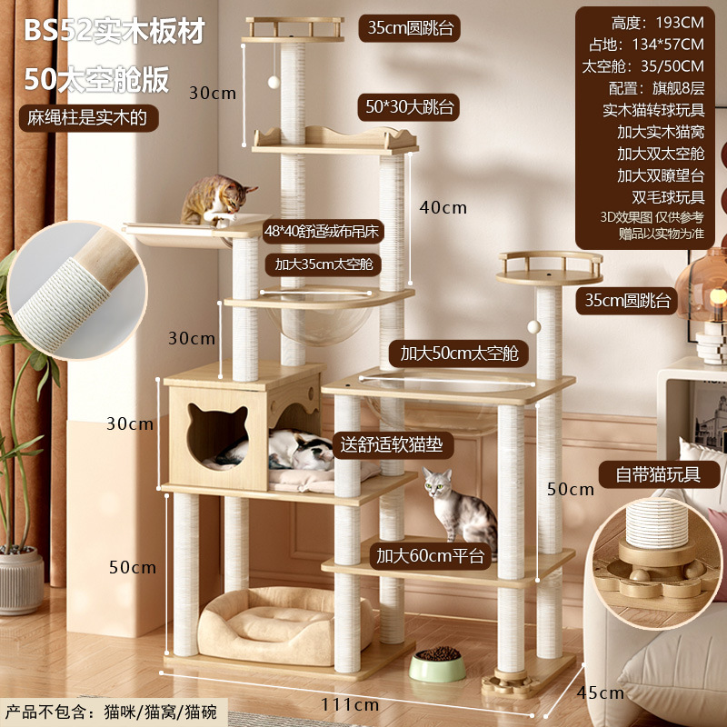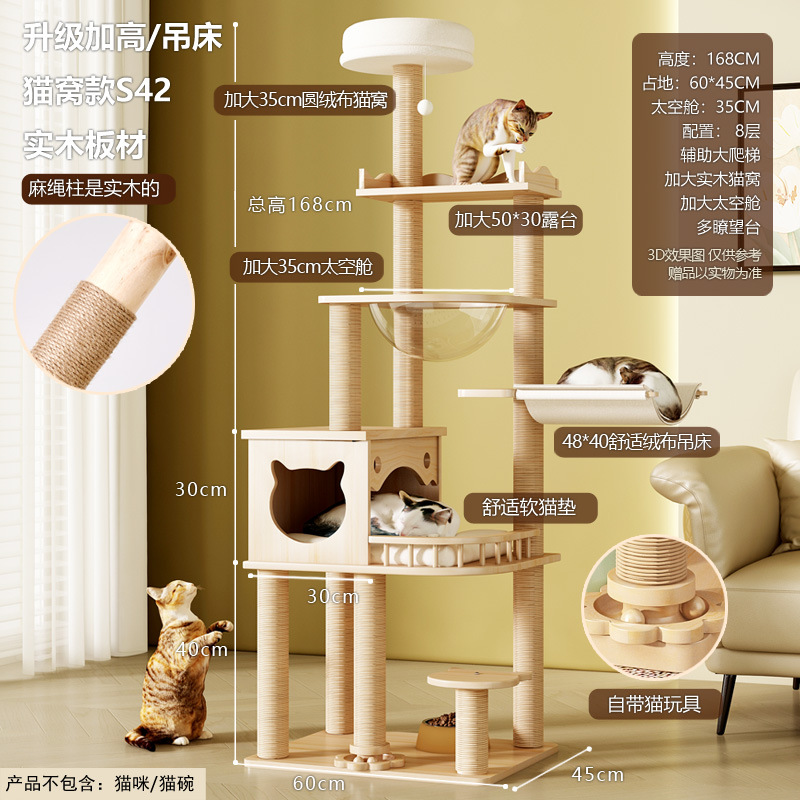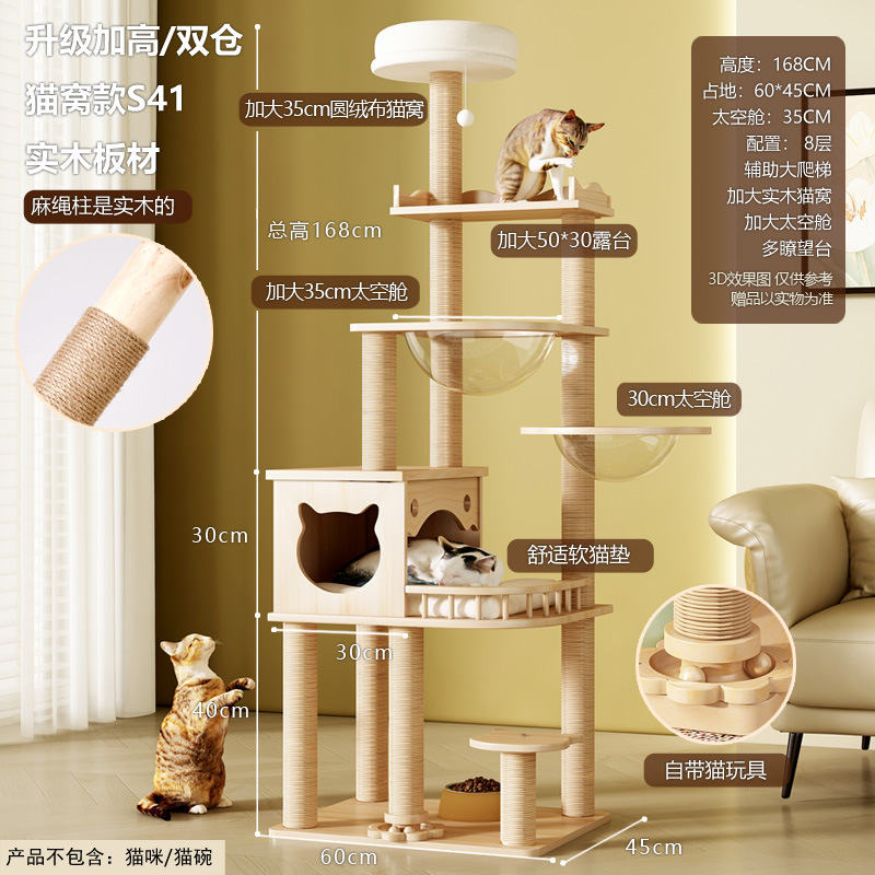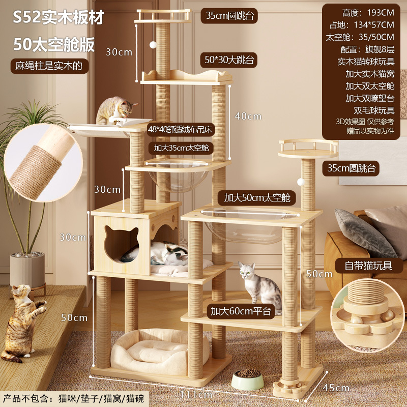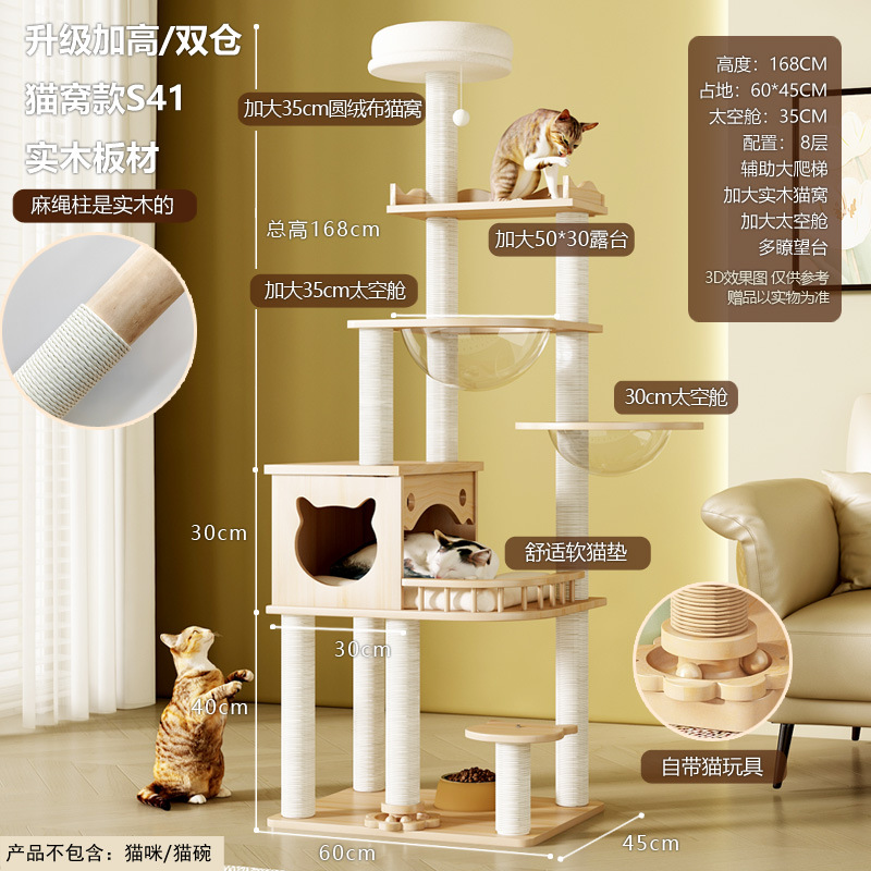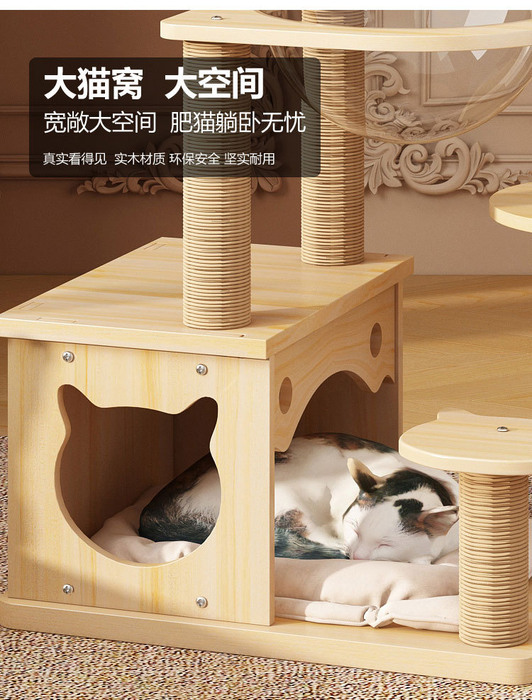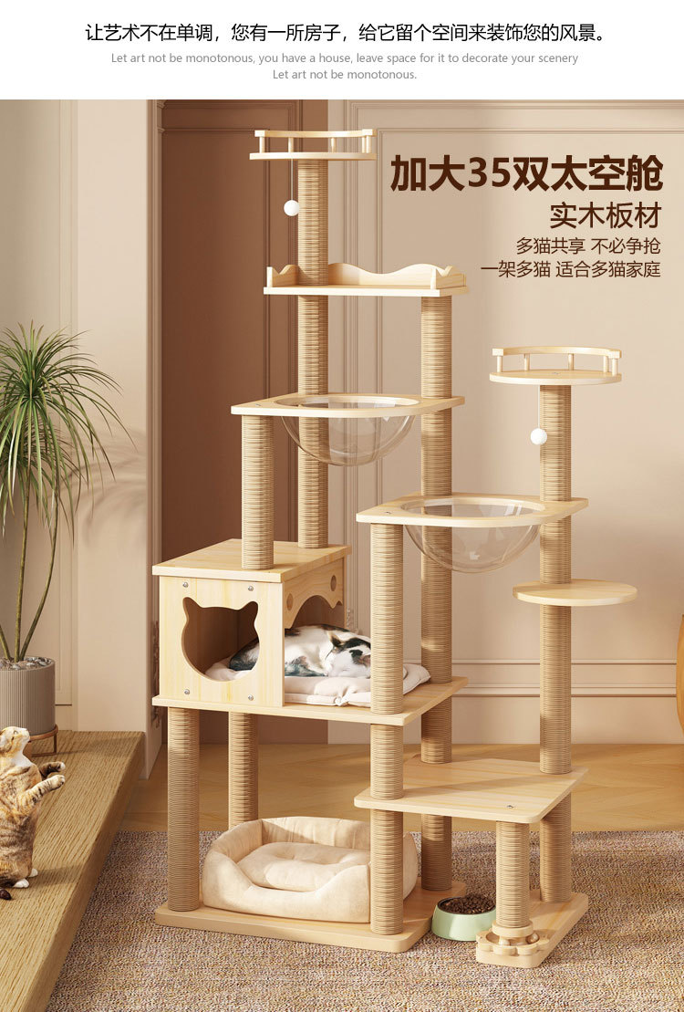 단단한 나무 고양이 등반 프레임 고양이 둥지 고양이 나무 통합 고양이 잡아 열 큰 하늘 열 확대 공간 캡슐 고양이 용품 완전한 컬렉션
