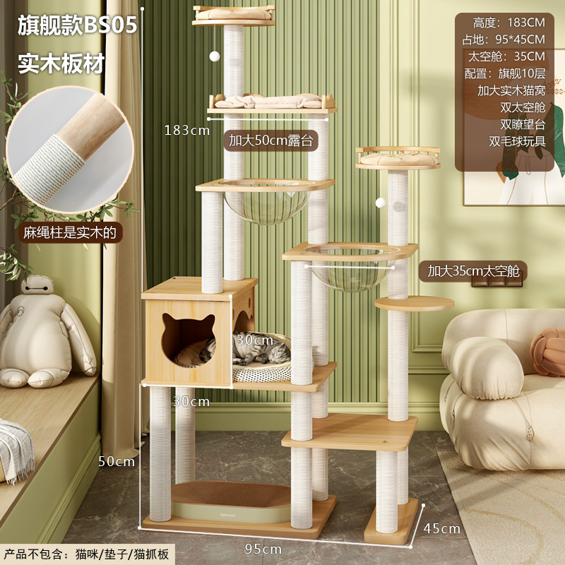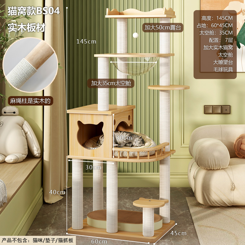 • BS05 고양이 둥지 이중 공간 캡슐 단단한 나무 등반 기둥