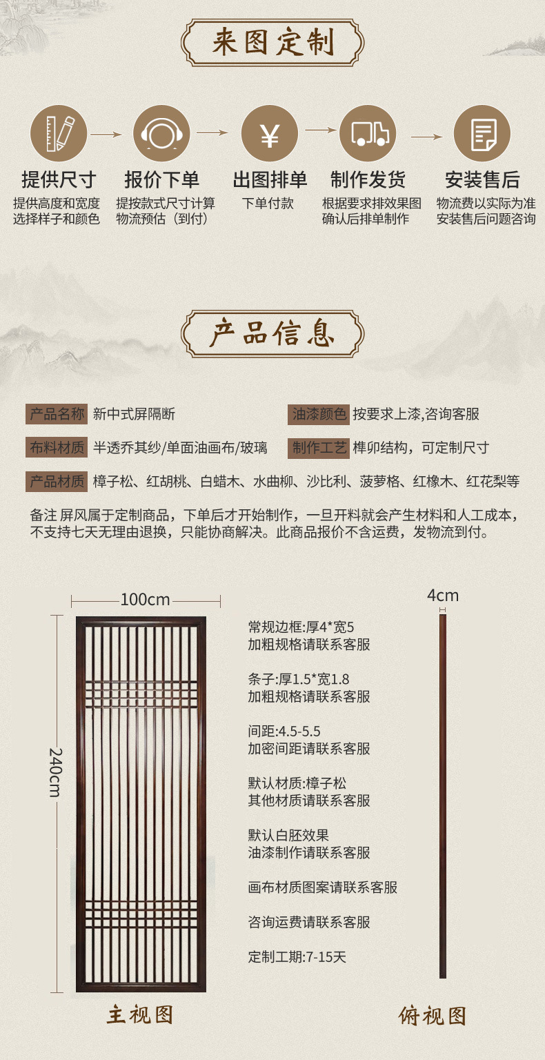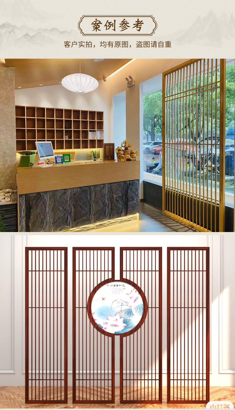 신제품 새로운 중국 스타일 스크린 파티션 거실 침실 입구 문 음영 홈 입구 사무실 솔리드 우드 모바일 매화스토어 가기