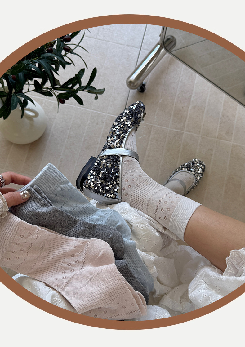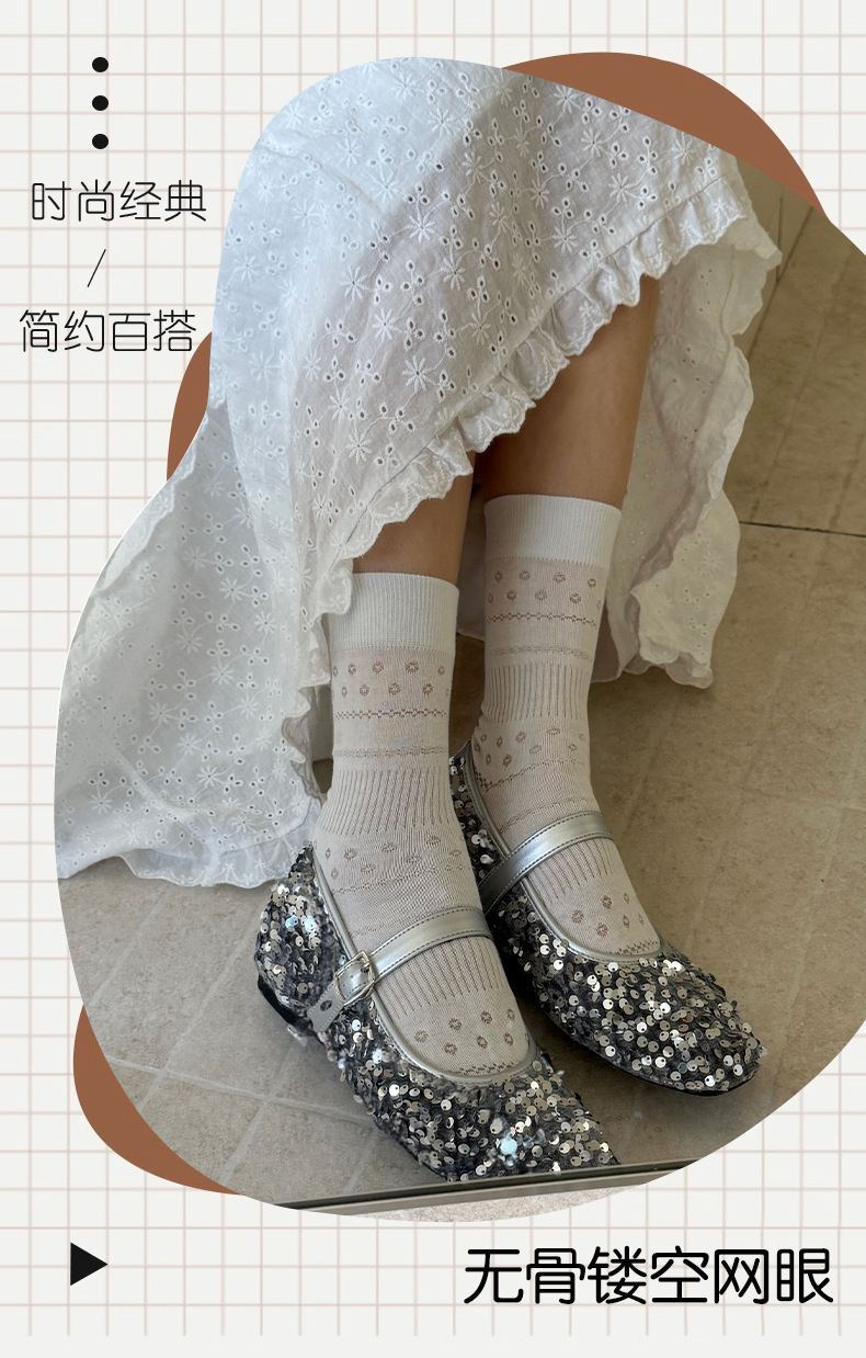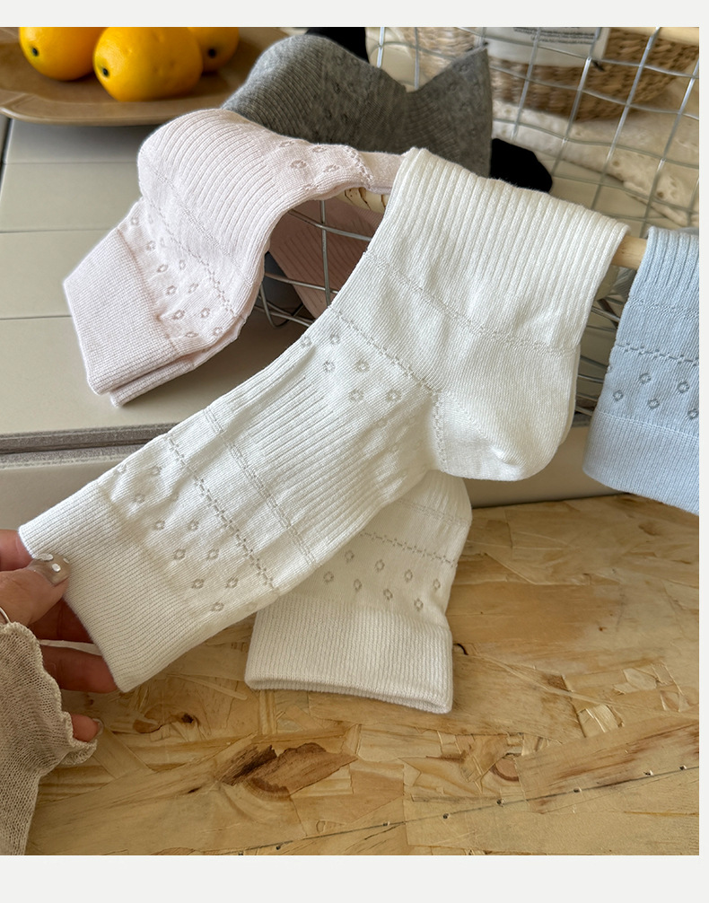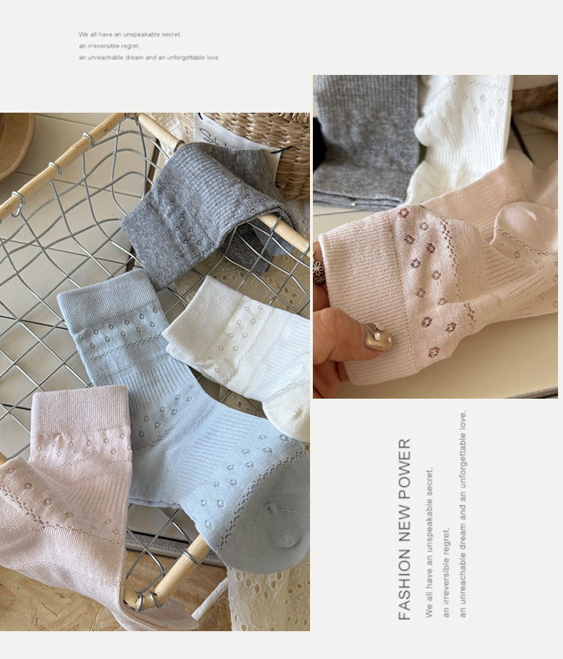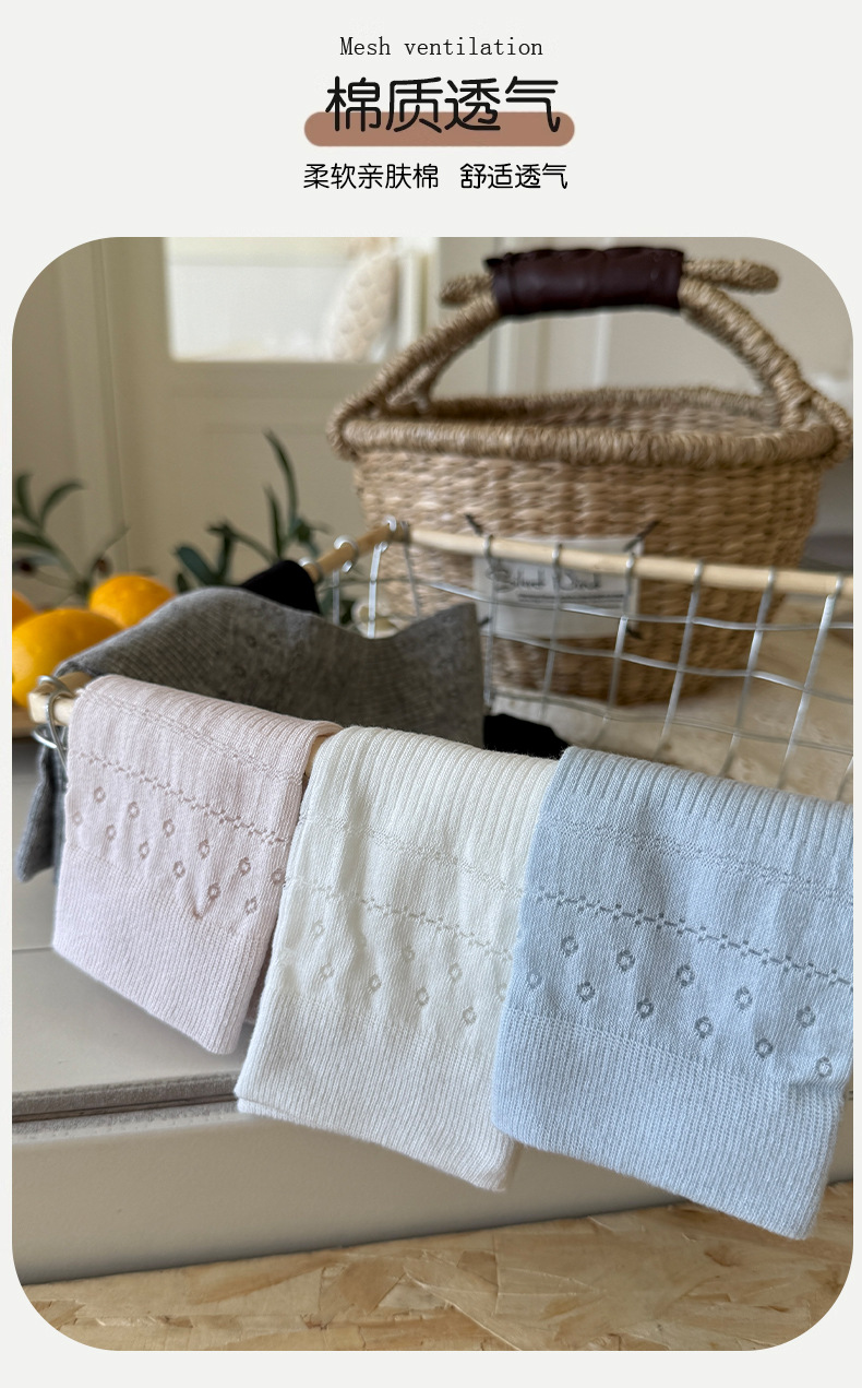 솔리드 컬러 양말 여성 여름 얇은 메쉬 할로우 통기성 미드 튜브 양말 달콤한 꽃 올 매치 본리스 스택 양말스토어 가기