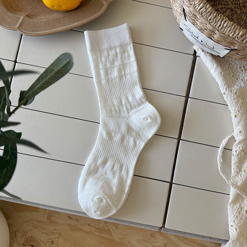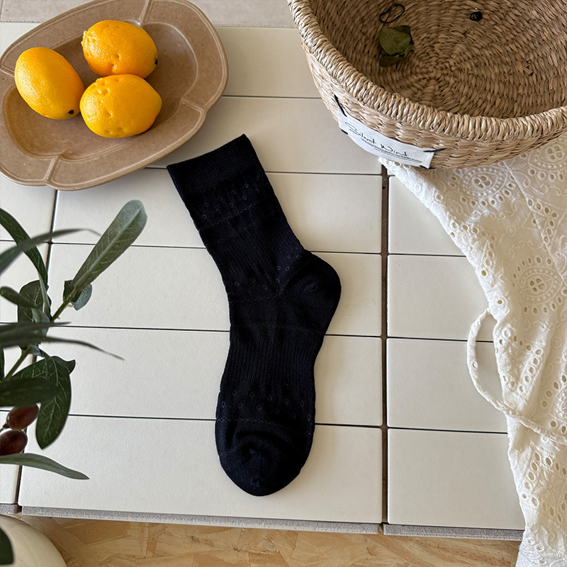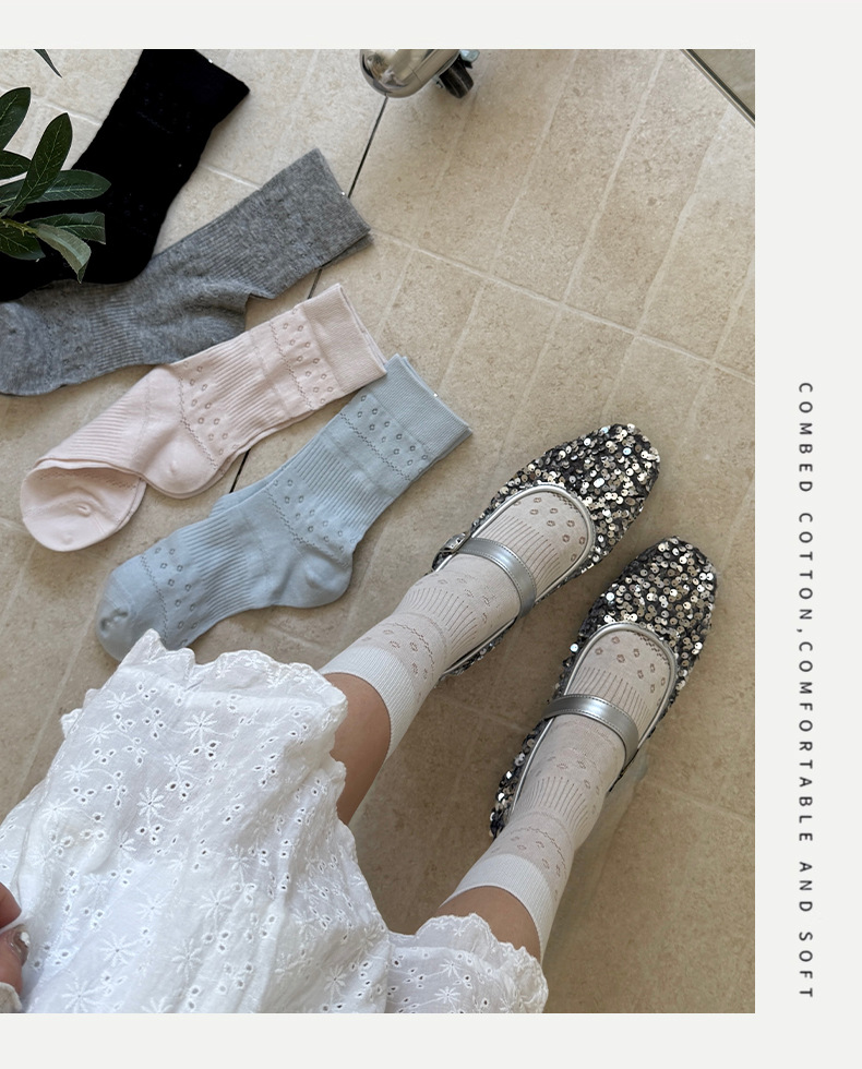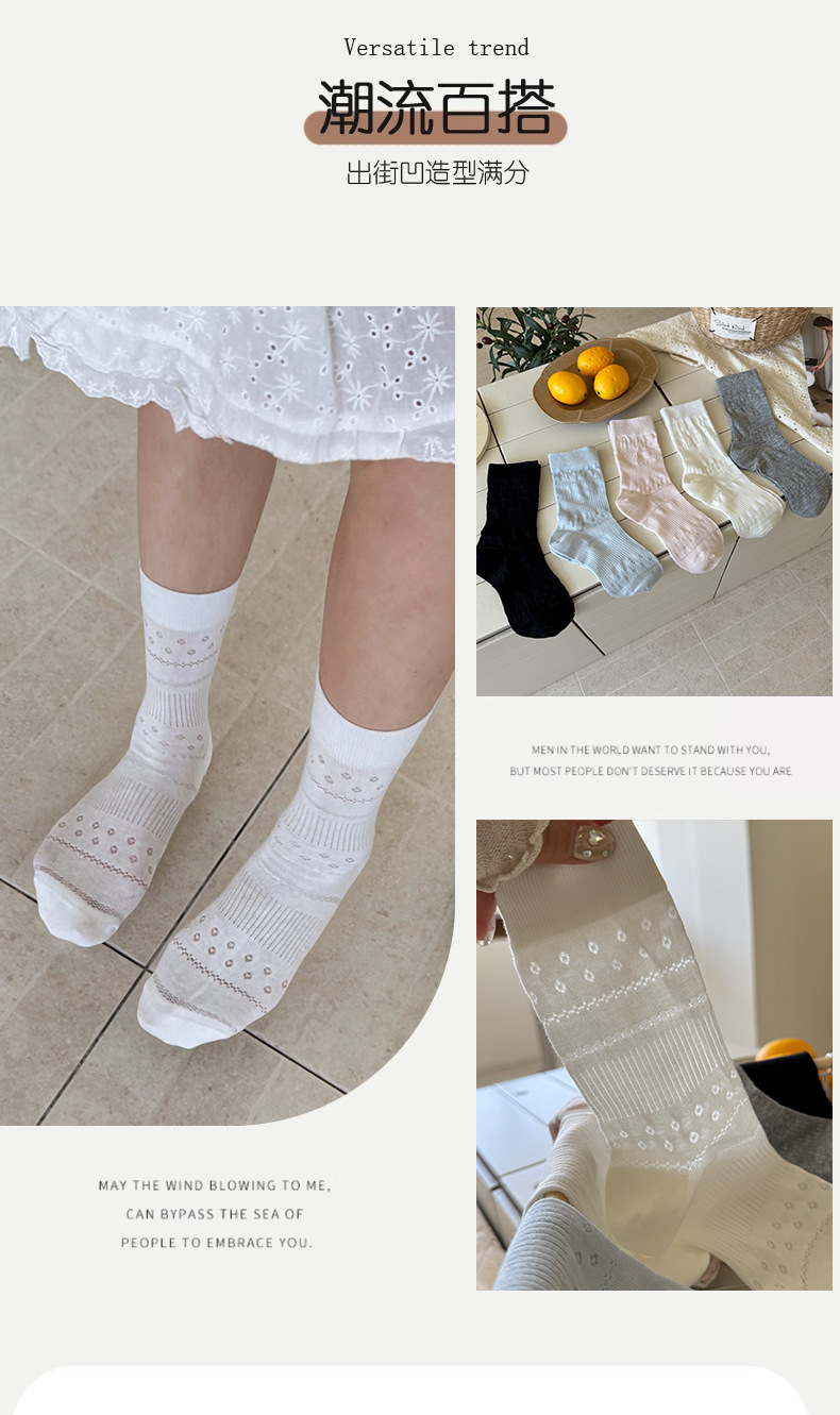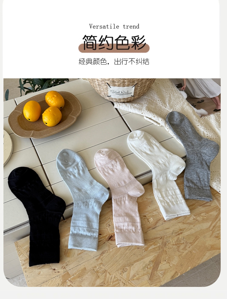 솔리드 컬러 양말 여성 여름 얇은 메쉬 할로우 통기성 미드 튜브 양말 달콤한 꽃 올 매치 본리스 스택 양말스토어 가기