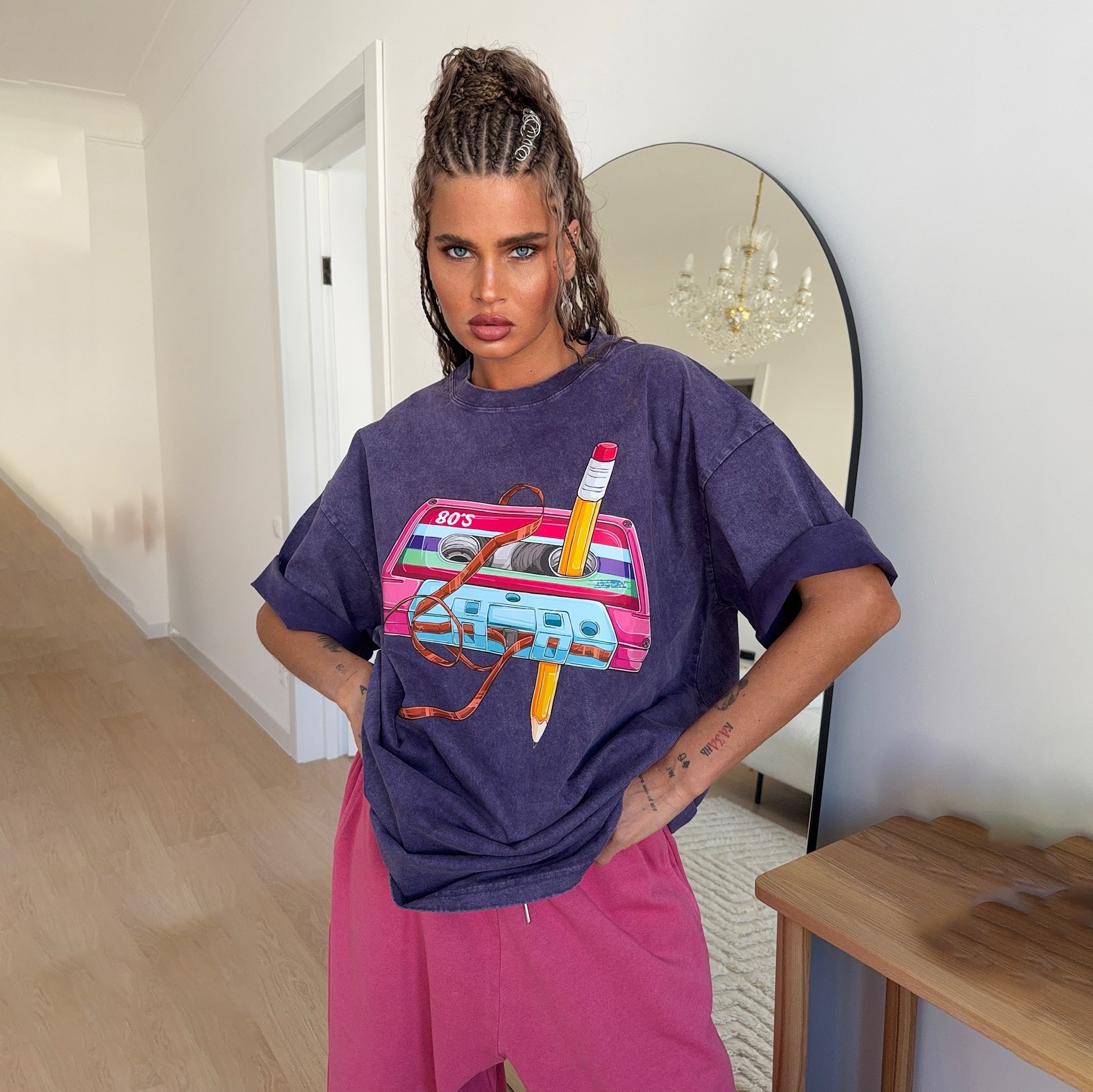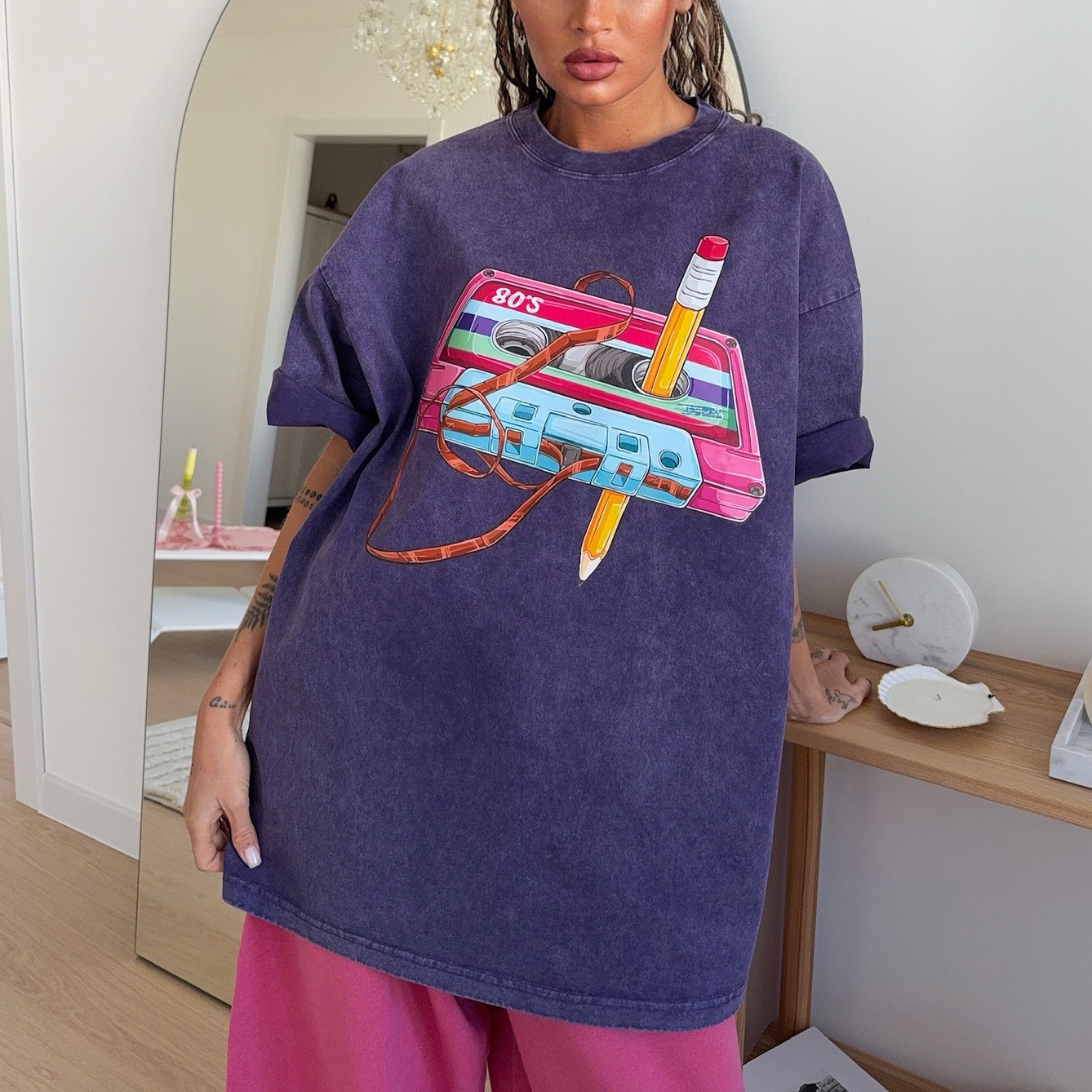 美式时尚小众潮牌做旧圆领创意印花棉T恤宽松中长款百搭短袖上衣