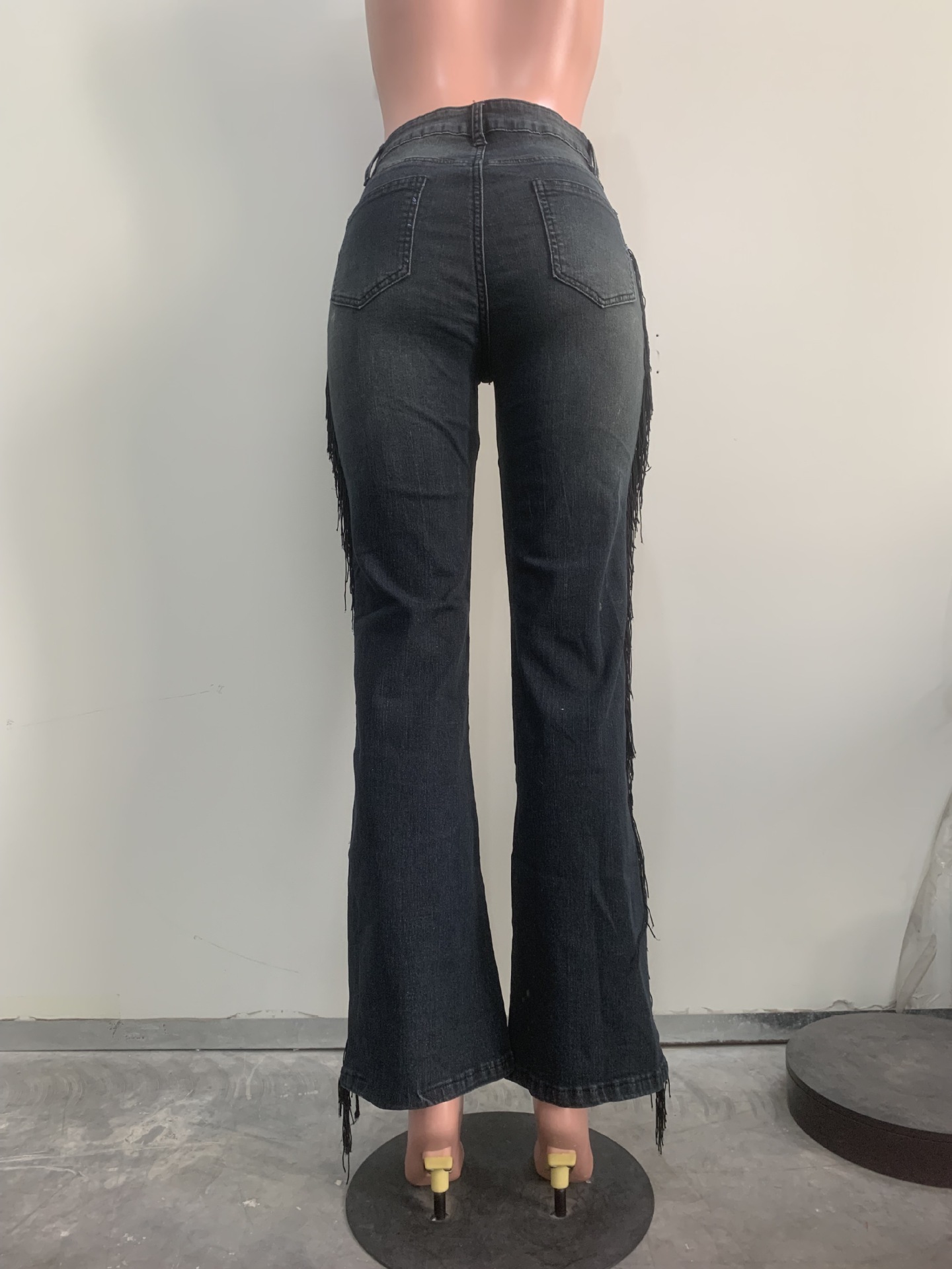 Y5270 유럽과 미국 여성 패션 복고풍 술 가장자리 높은 허리 스트레이트 바지 청바지