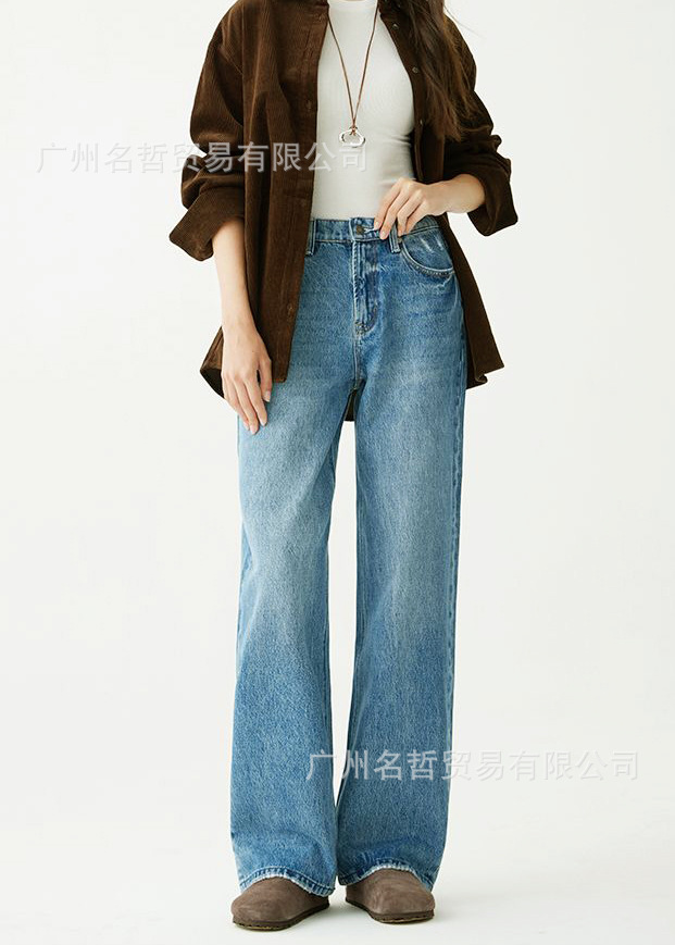 Mingzhe MZ 허벅지 수축 25SS 유럽과 미국의 고급 루즈 스트레이트 와이드 레그 청바지 여성용 고급 공장 직접 판매스토어 가기